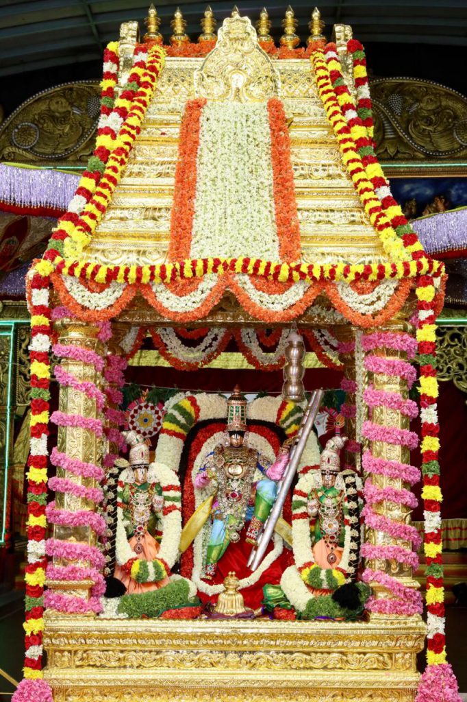 On the evening of the Day-4 of the Srivari Navaratri Brahmotsvam, on Monday, Sri Malayappaswamy rode on Sarvabhupala vahan in Utti Krishnudu alankaram and blessed devotees. The vahana is placed at the Kayanotsava mandapam of Srivari Mandapam in view of Covid-19 restrictions.