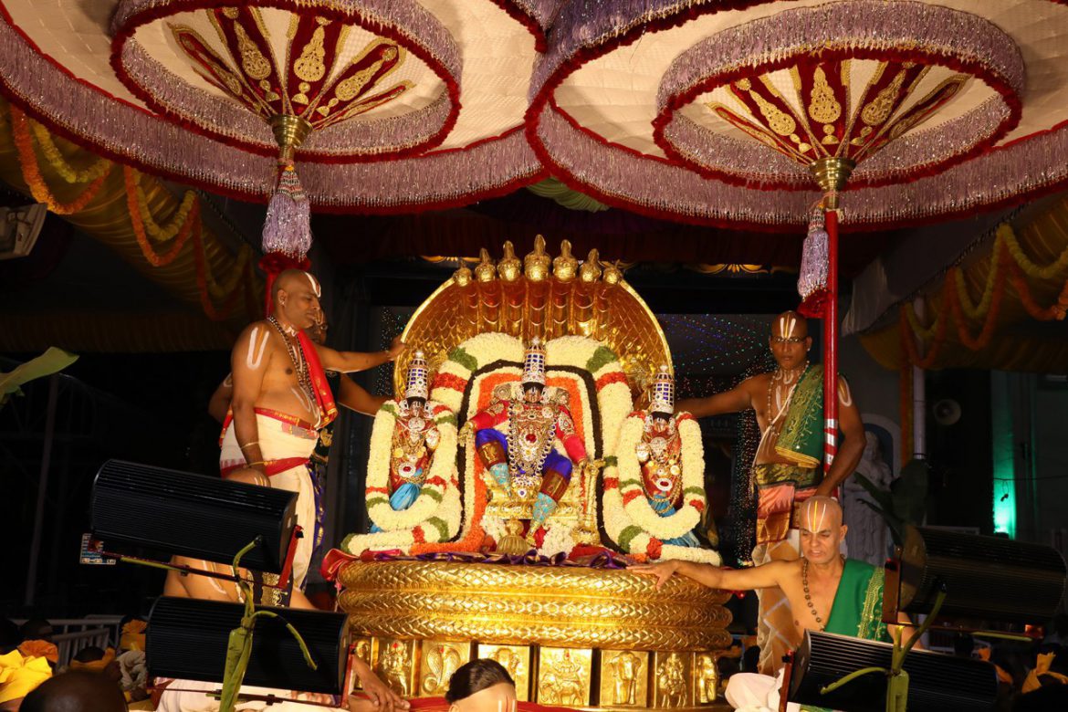 On the first day evening of the Navaratri Brahmotsavams, the processional deities of Sri Malayappa swamy flanked on either sides by his two divine consorts, Sridevi and Bhudevi took a celestial ride on the seven hood Serpent King Adishesha on…