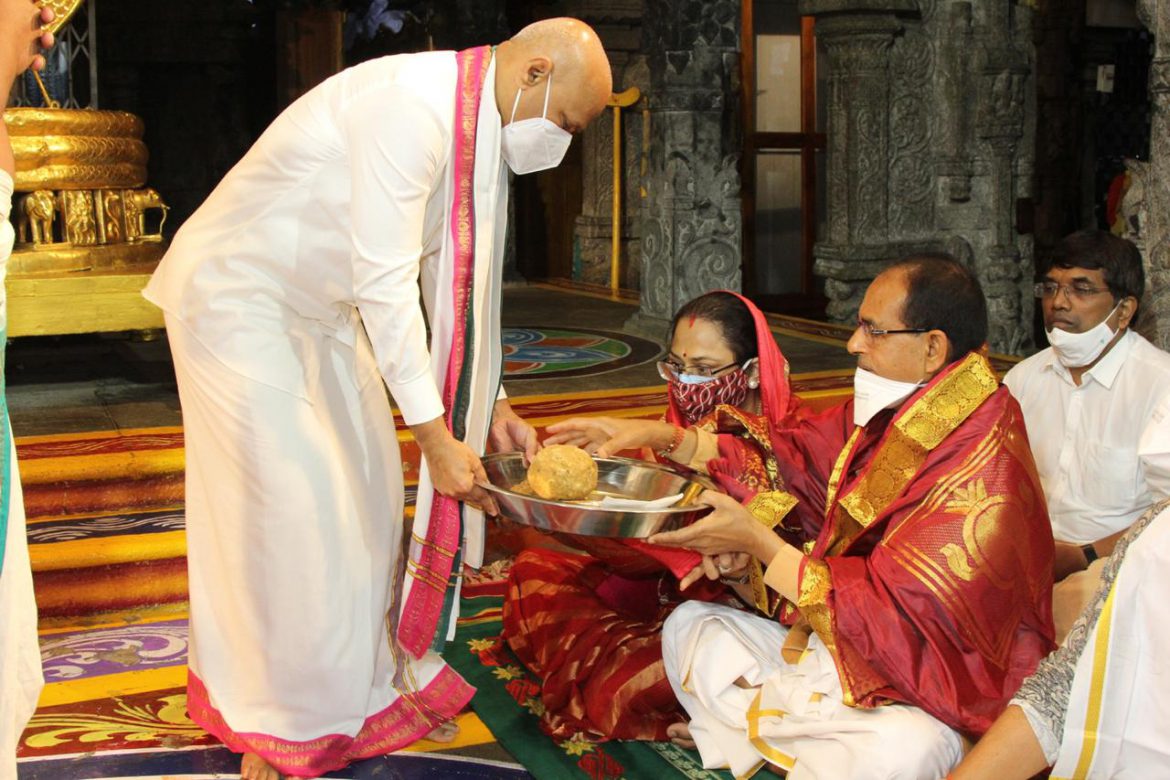 Madhya Pradesh CM Sri Shivraj Singh Chauhan prays at Tirumala