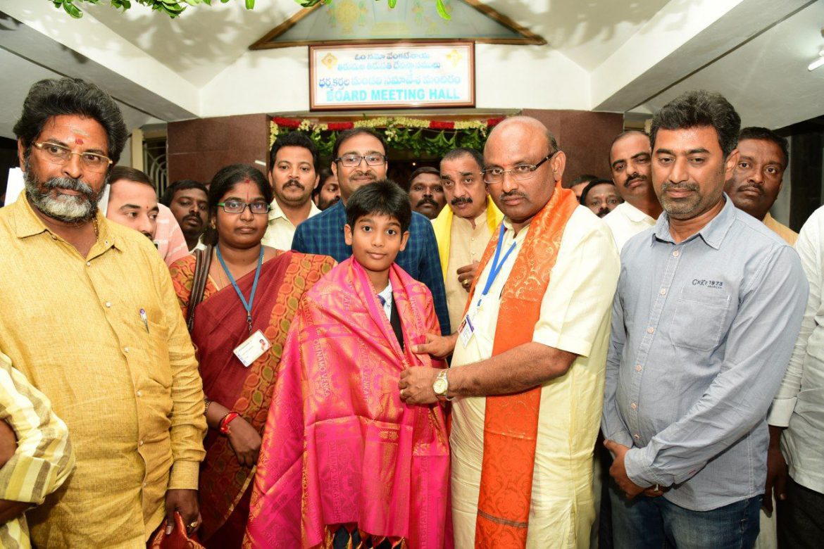 TTD chairman Sri Putta Sudhakar Yadav on Tuesday felicitated Chi VGL Amarthya, son of TTD employee couple Smt Veenadhari and Sri Venkatesh, for being selected to NASA in US for annual space research contest. Studying in Class VI, from Sri…