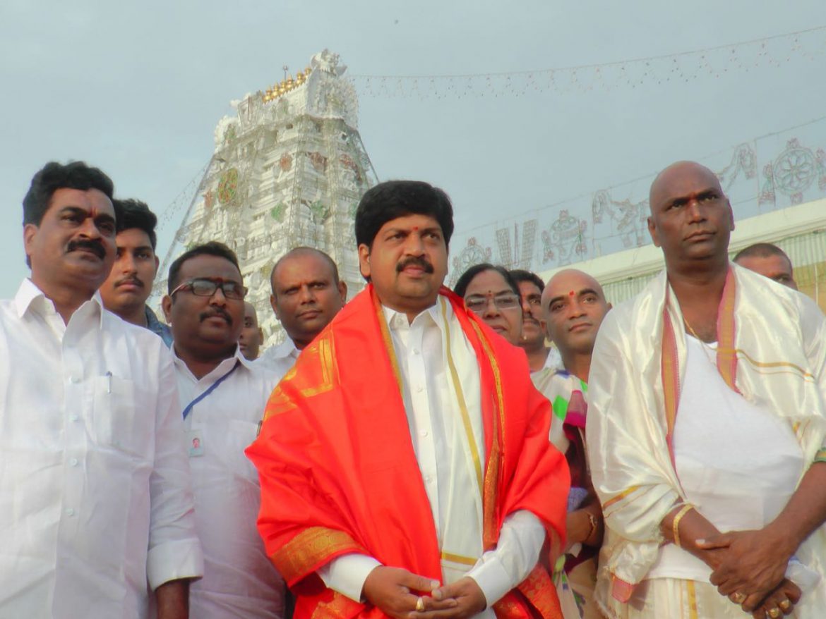 Andhra Pradesh minister Kollu Ravindra has visited Tirumala hill shrine to offer his prayers to Lord Venkateswara. Ravindra had darshan of the deity during VIP break today morning. After darshan temple officials offered Laddu prasadam and holy water to him…