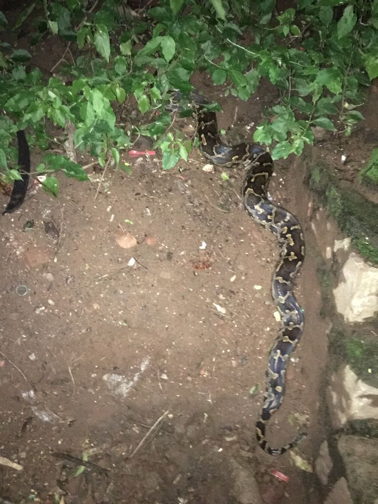 they caught python and left in the forest. Local shopkeepers said snakes appear more frequently from few days. Devotees shown interest to see the offcials catching the snake.
