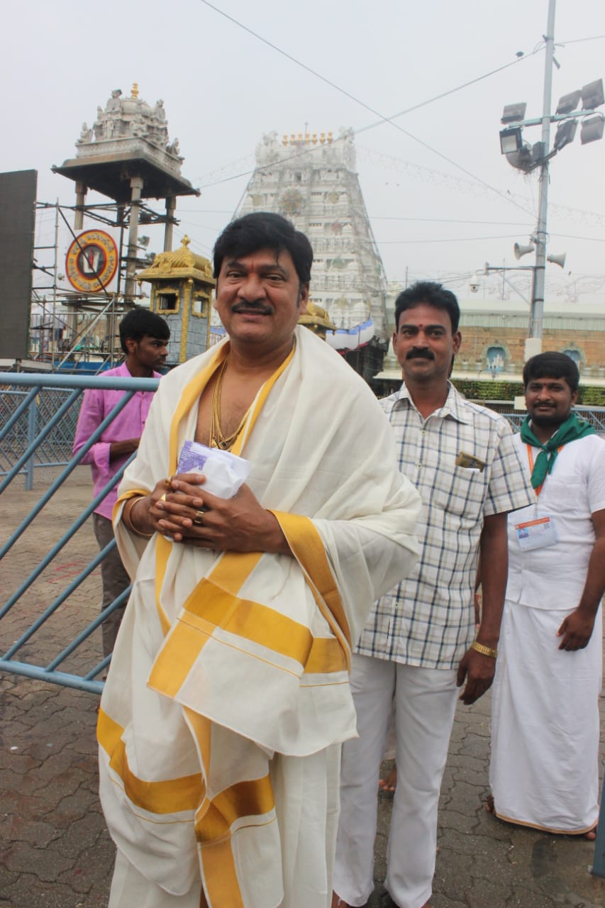 Tollywood veteran actor Rajendra Prasad has visited Tirumala hill shrine on Saturday and offered prayers to Lord Venkateswara. He had darshan of the deity during VIP break. After darshan temple officials offered Laddu prasadam and holy water at Ranganayakula mandapam.