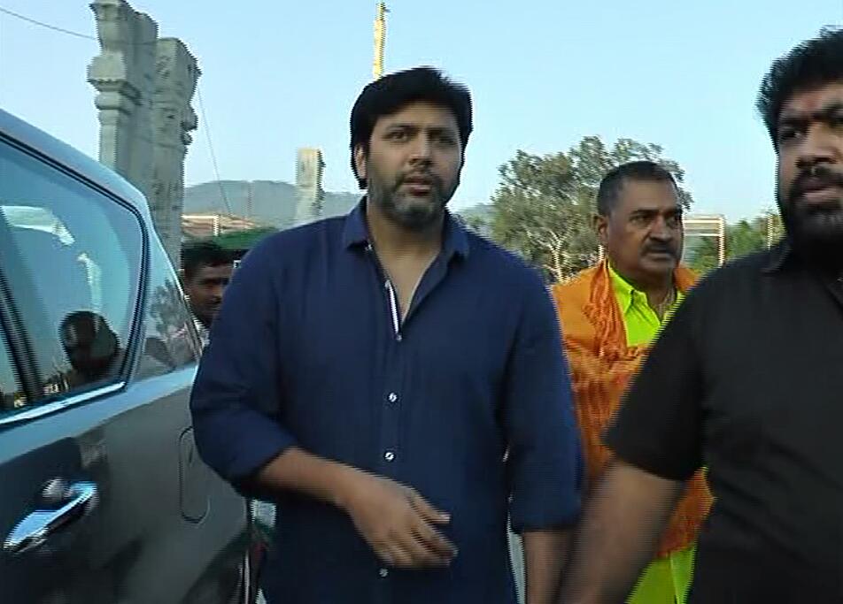 Natural Star Nani and Kollywood actor Jayam Ravi has offered prayers to Lord Venkateswara on Sunday. Accompanied by their families, Nani and Ravi had darshan during VIP break darshan. After prayers preists offered Laddu prasadam and holy water to the heroes at Ranganayakula mandapam. Speaking to reporters outside temple, Nani said his movie MCA is releasing in few days and his next movie is Krishan Yuddam.