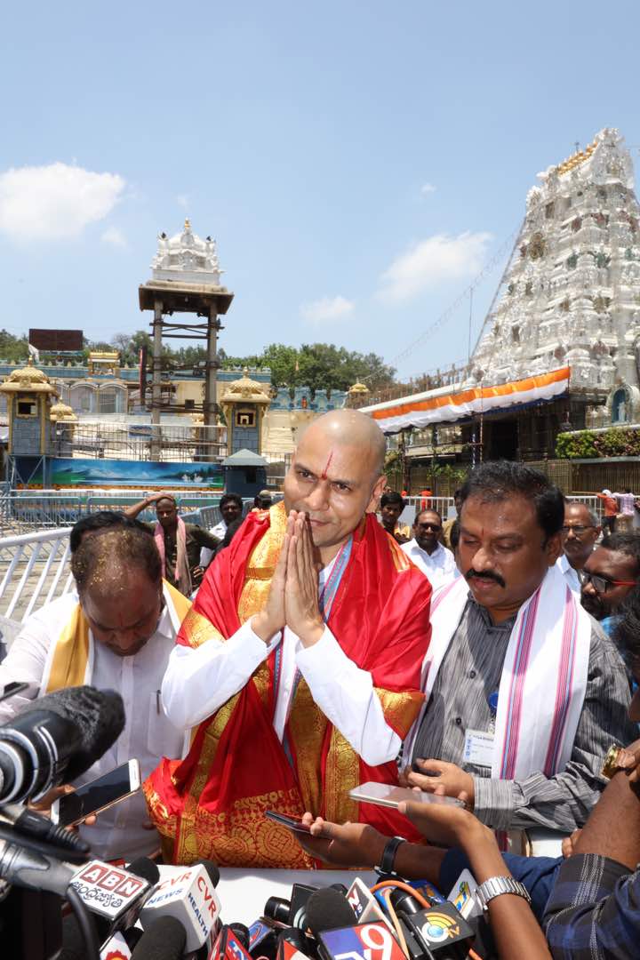 అనంతరం ఆలయం వెలుపల ఆయన మీడియాతో మాట్లాడుతూ తిరుమలకు లక్షలాదిగా భక్తులు వస్తుంటారని వారందరికి మెరుగుగా దర్శనం కల్పించడమే ధ్యేయమని ఆయన అన్నారు. ”ఇప్పటికే పూర్వపు ఈఓలందరూ భక్తులకు మెరుగుగా దర్శనం కల్పించడానికి ఎన్నో మార్పులు చేశారన్నారు. అయితే మంచి మార్పులకు అంతమనేది వుండదు. కాబట్టి మా అధికారులందరి సమన్వయంతో మరింత ఉన్నతంగా భక్తులకు సంతృప్తికరమైన దర్శనాన్ని అందించడానికి ఒక సేవకునిగా కృషి చేస్తాను”. అని తెలిపారు.