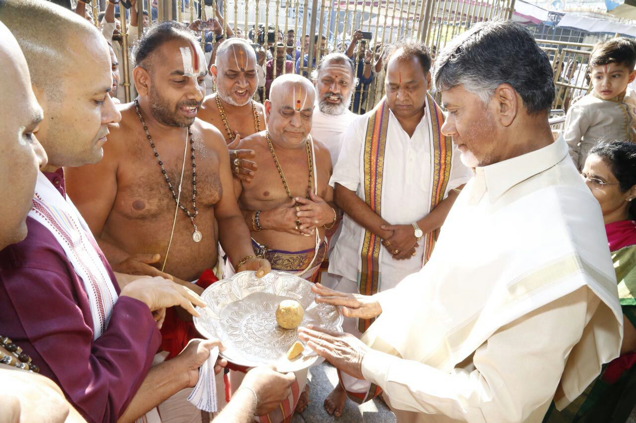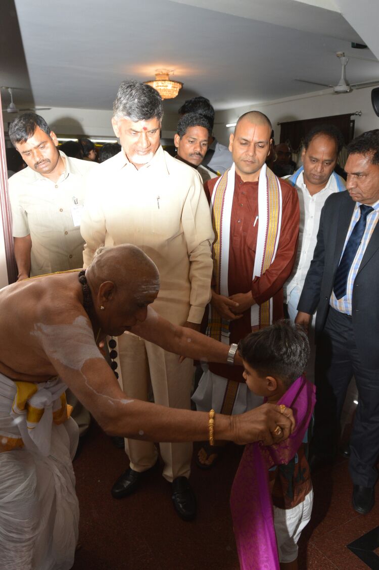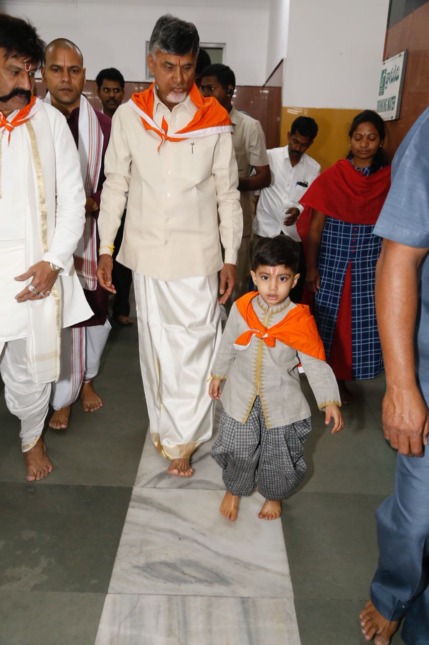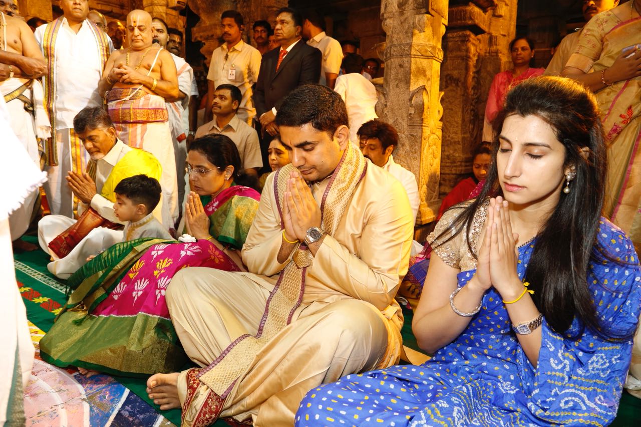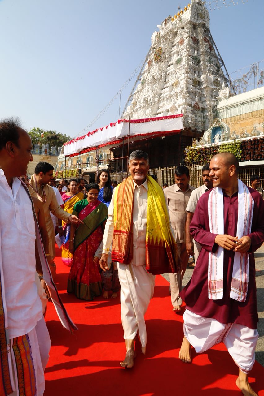 Andhra Pradesh Chief Minister N. Chandrababu Naidu and his family members visited Tirumala to offer prayers to the Lord Venkateswara on the occasion of the Fourth Birth Day of his Grandson Chi Devansh. Accompanied by his son and Panchayat Raj Minister Nara Lokesh, Hindupur MLA N Balakrishna, Nara Brahmani, Nara Bhuvaneswari and Nara Devansh, CBN had darshan of the deity today morning.