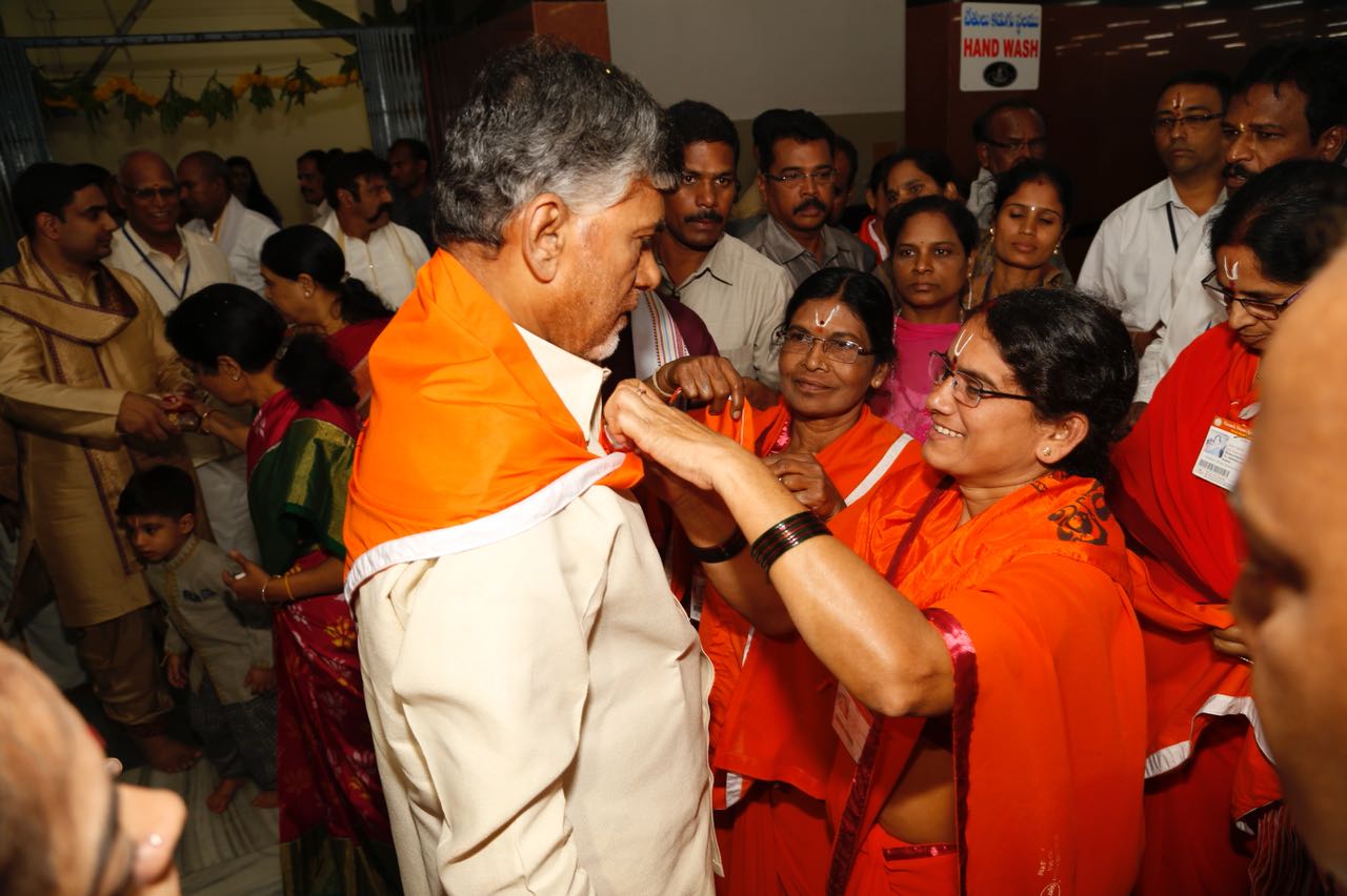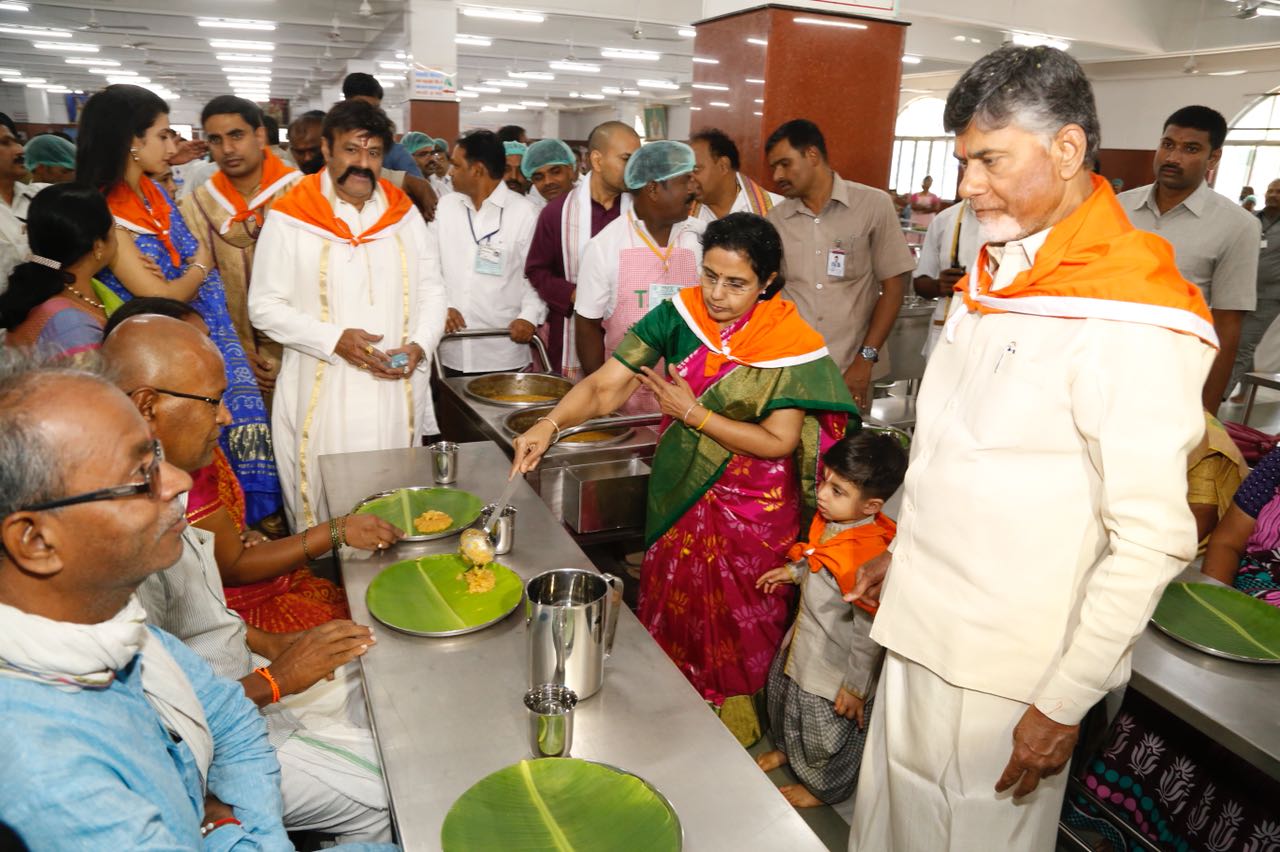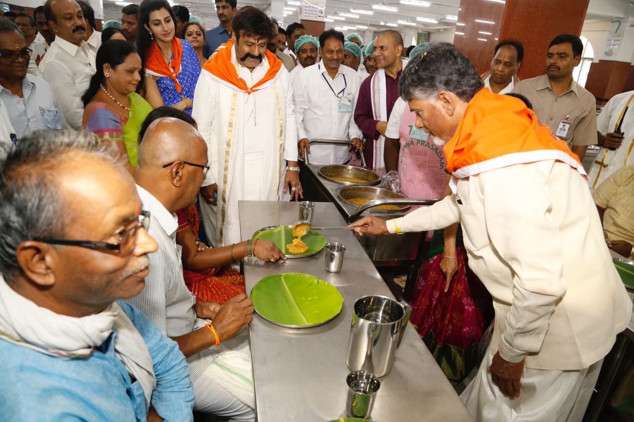 Naidu and his family members later served annaprasadams in Matrusri Tarigonda Vengamamba Annaprasadam Complex (MTVAC) in Tirumala. The CM along with his wife Smt Bhuvaneshwari, his son and Minister of AP Sri N Lokesh, Brother-in-Law and Hindupur Legislator Sri N Balakrishna, along with their spouses served pongal and kichidi to pilgrims wearing Srivari Seva scarves and rendered service. Later they also had annaprasadam.