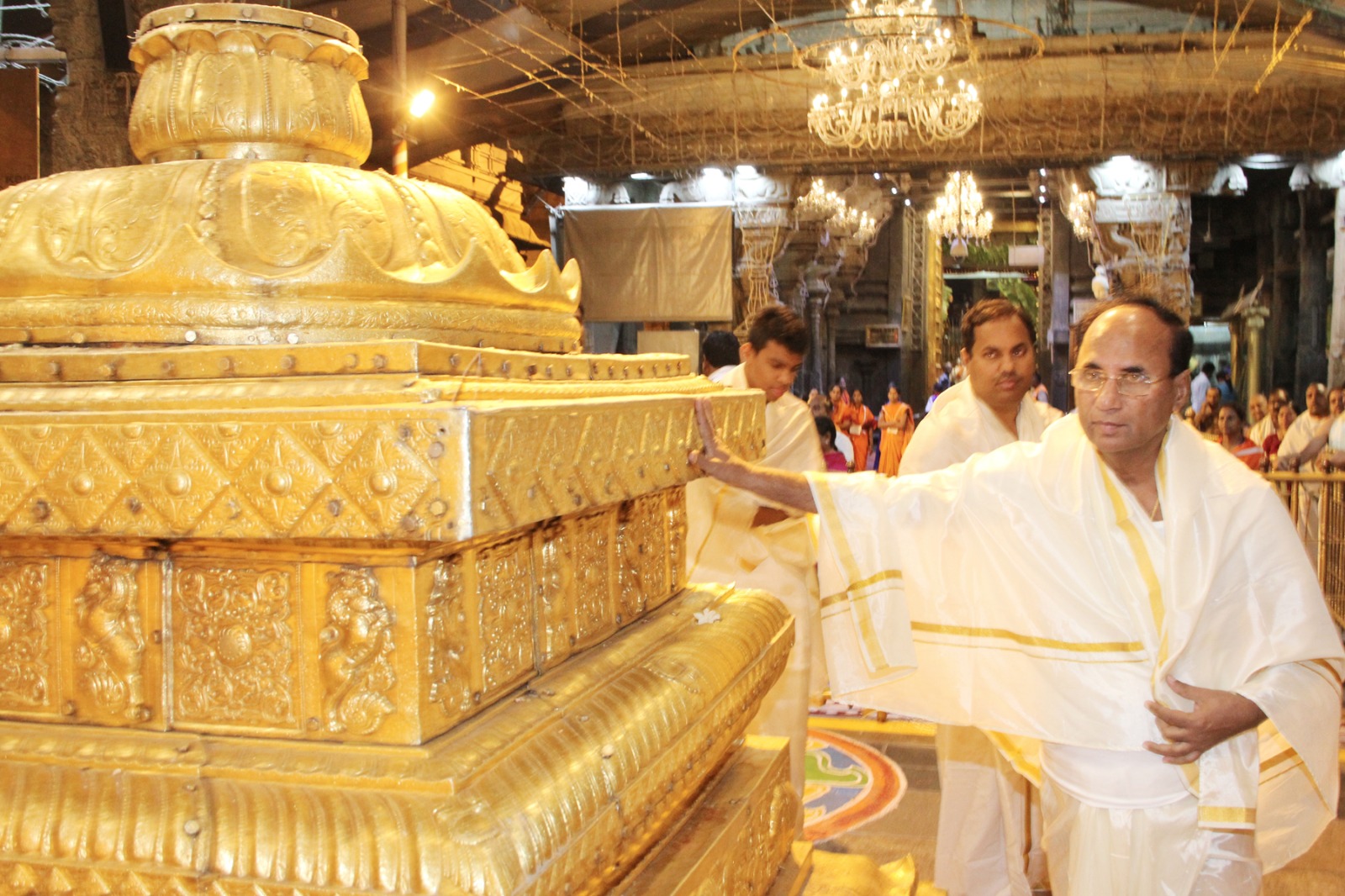 Andhra Pradesh Assembly Speaker Kodela Siva Prasad Rao offered prayers in the temple of Lord Venkateswara during Archana seva along with family members on Wednesday. On his arrival at Sri Vari Temple, the priests and officials have welcomed him with Temple honors and led to the sanctum sanctorium. Later he offered prayers to the presiding deity of Lord Venkateswara. fter offering prayers the Vedic Pundits rendered Vedasirvachanam to the Assembly Speaker at Ranganayakula Mandapam.