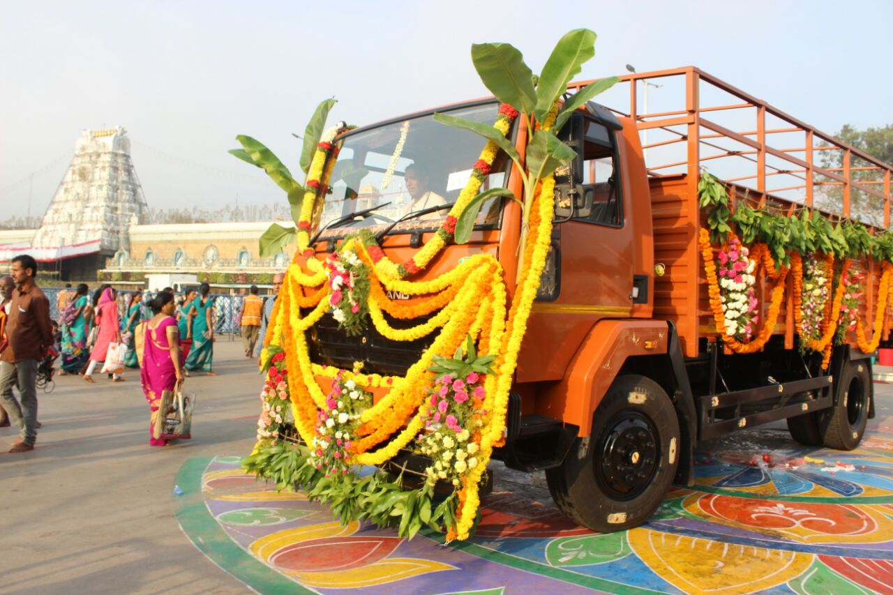 Ashok Leyland company MD Vinod Dasari today presented a new truck worth 16 lakhs to Tirumala temple. He gave the keys of the new truck to TTD JEO after pooja.