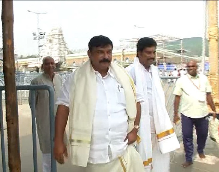 Andhra Pradesh BJP MLA Vishnu Kumar Raju has visited Tirumala hill shrine to offer prayers to Lord Venkateswara. He had darshan of the deity during VIP break. After darshan, temple officials offered laddu prasadam and holy water to him at Ranganayakula Mandapam. Later speaking to reporters, Vishnu Kumar criticised AP CM Chandrababu Naidu for campaigning against BJP ahead of Karnataka general elections.