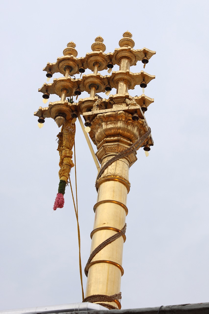 A specially designed flag with the image of Garudalwar was hoisted on the temple pillar located in Dhwaja mandapam in auspicious Kuburan between 4pm and 4.45pm during Makara Lagnam.