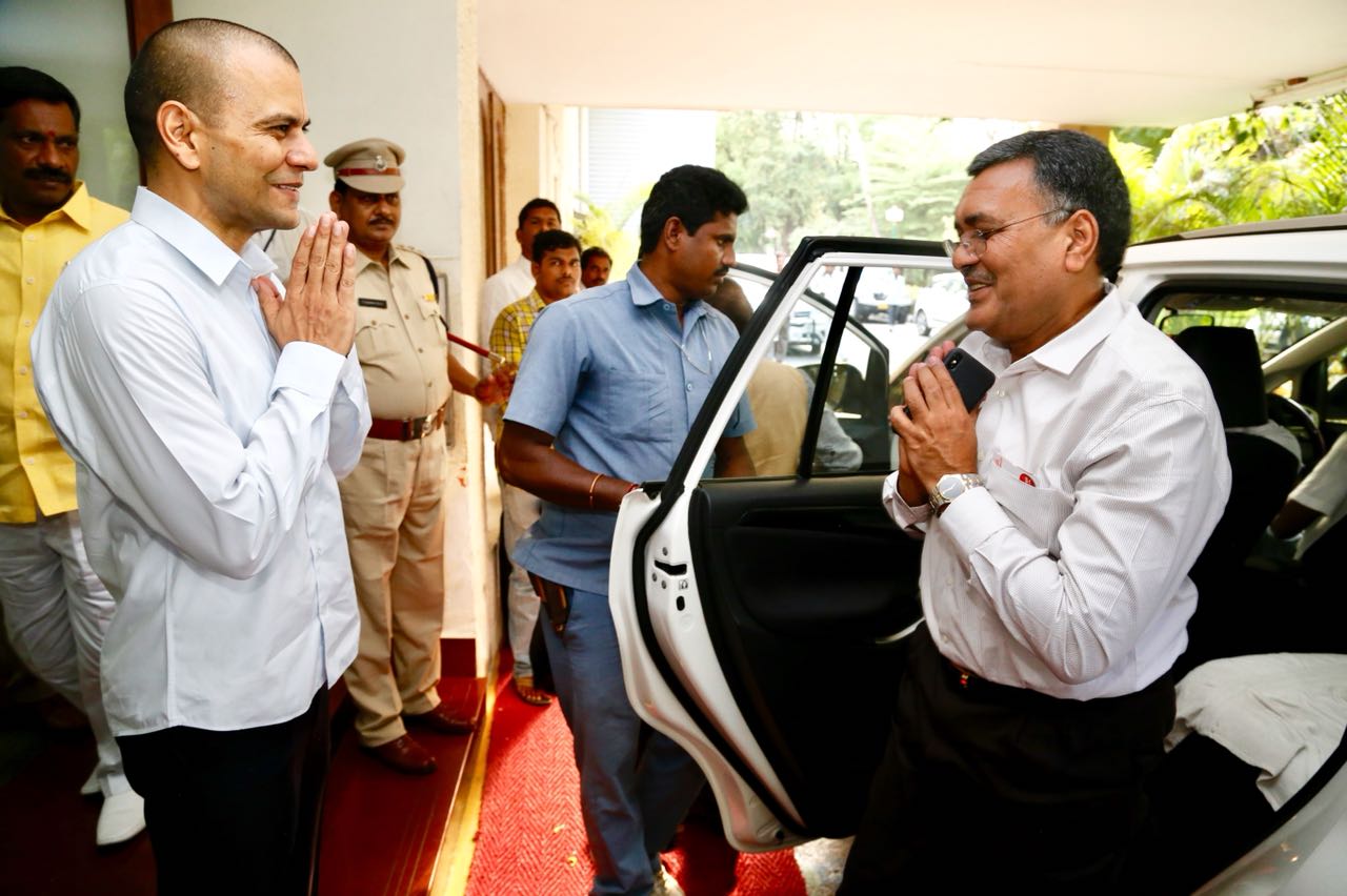 Chief secretary of AP Sri DInesh Kumar visited Tirumala hill shrine. On his arrival, TTD EO AK Singhal welcomed him with flower bouquet at SPRH, Tirupati.