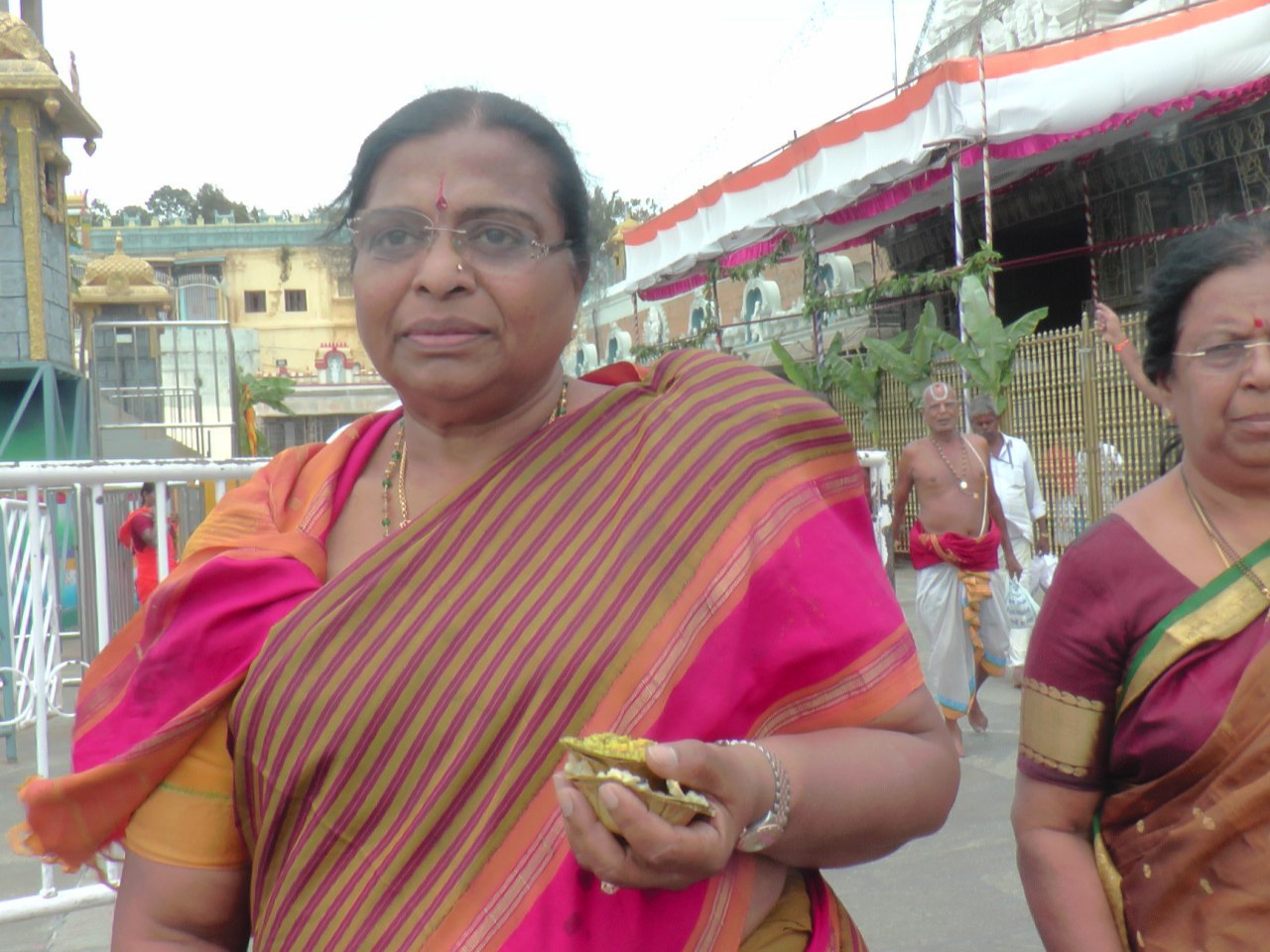 satyaprabha 1Chittoor MLA DK Satyaprabha participated in the sacred ritual of Pavitrotsavams in Tirumala on Saturday. Later speaking to reporters, she said “the construction of the bow-shape metal ladder adjacent to the Narasimha Swamy temple located close to Vendi Vaakili is an emergency exit, which is being constructed after advice of Agama Pundits.