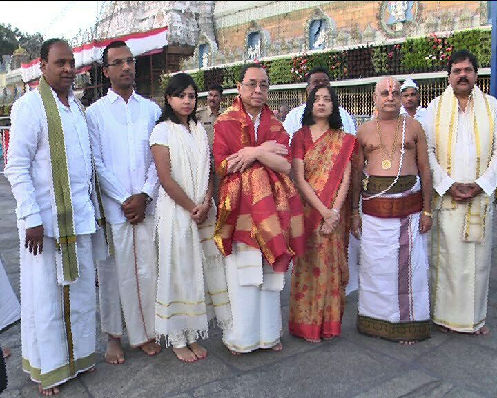 Several celebs had visited the famous hill shrine Tirumala on Sunday. VIP’s those visited the shrine include former cabinet minister and Congress leader Jairam Ramesh, Supreme Court justice Ranjan Gogoi, Telugu states high court judge Durga Prasad Rao, Tamil Nadu Endowment minister Ramachandran, former MP Chinta Mohan have darshan of the deity during VIP break. After darshan temple preists offered Laddu prasadam and holy water to the VIP’s at Ranganayakula Mandapam.