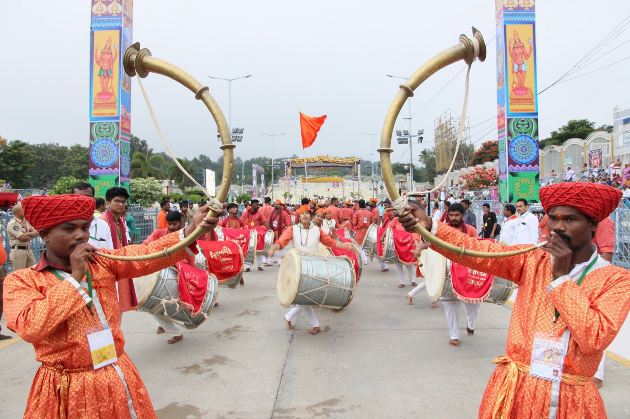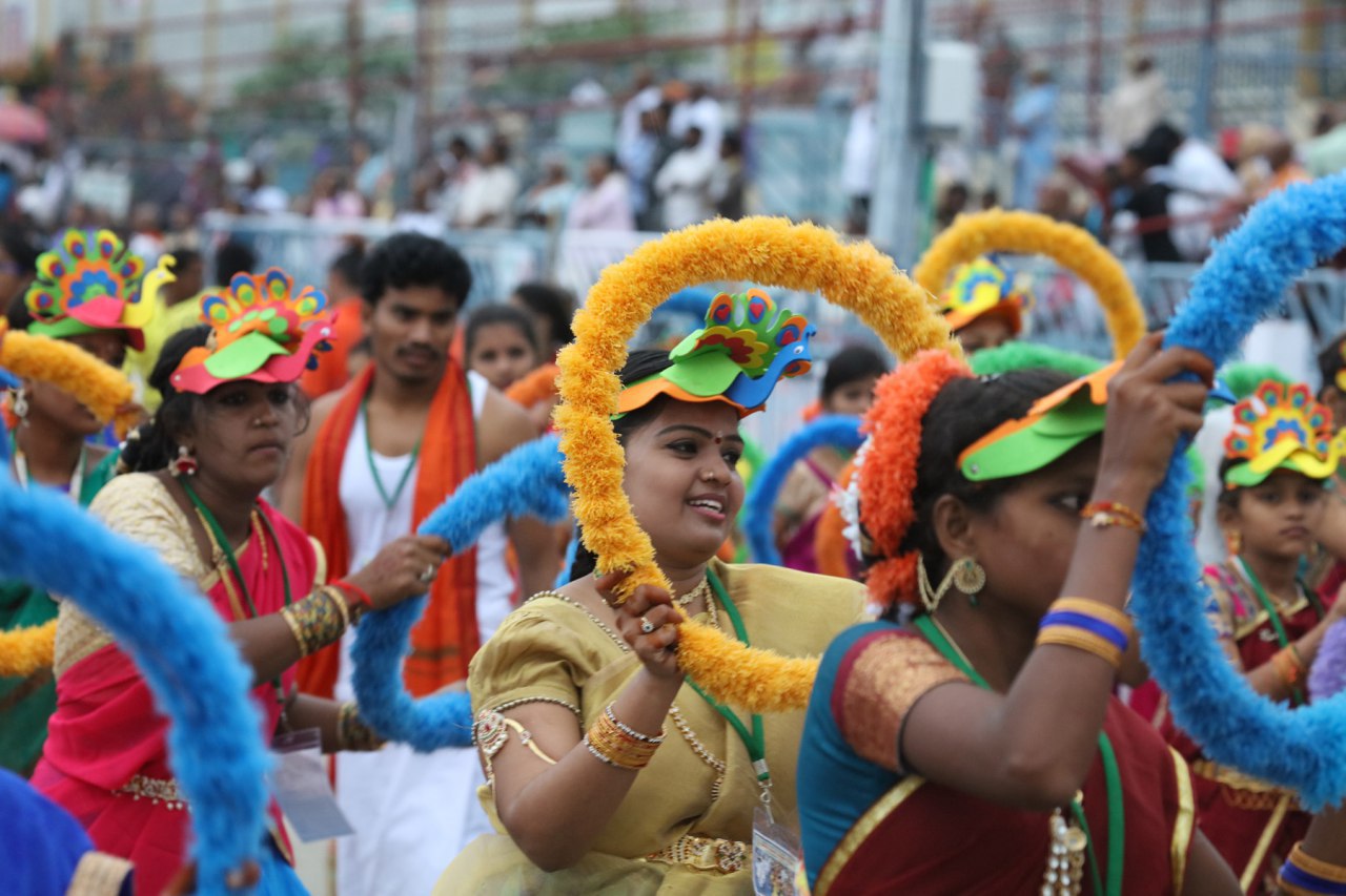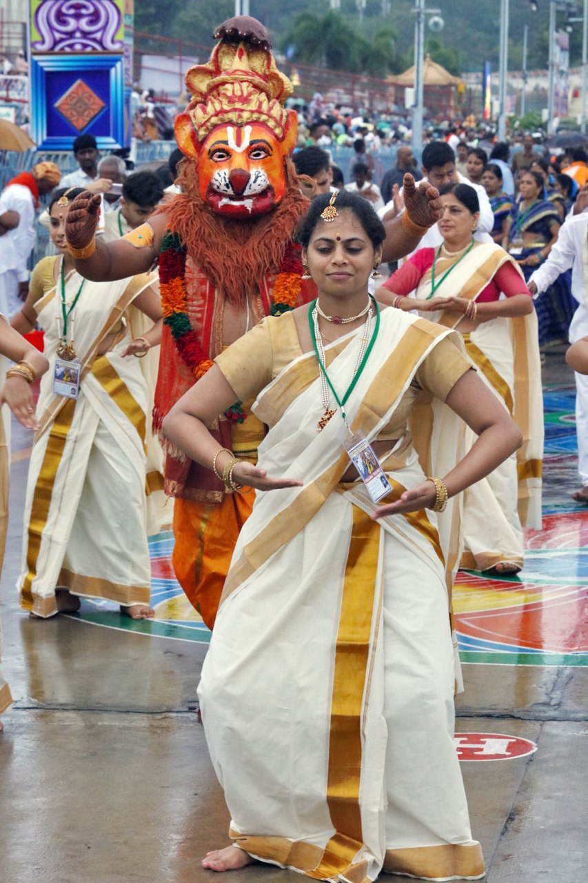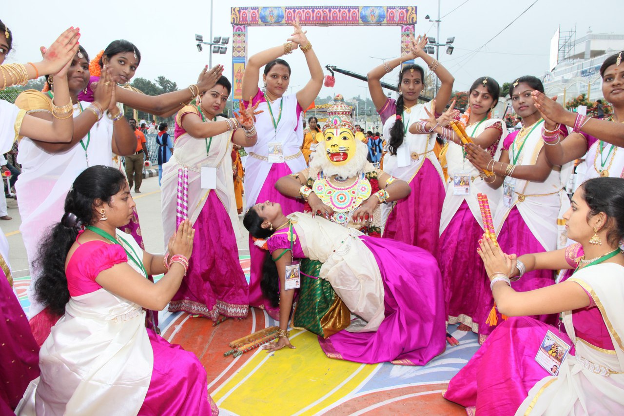 In the morning of the third day of Srivari Salakatla Brahmotsavams the devotional extravaganza organized by the Hindu Dharma Prachara Parishad, Annamacharya Project and Dasa Project with over 100 teams of artists comprising of 1500 performers in dance, sankeertans, folk arts like tappeta gullu, Dappu vadhyam, kolatalu etc won the hearts of the devotes.