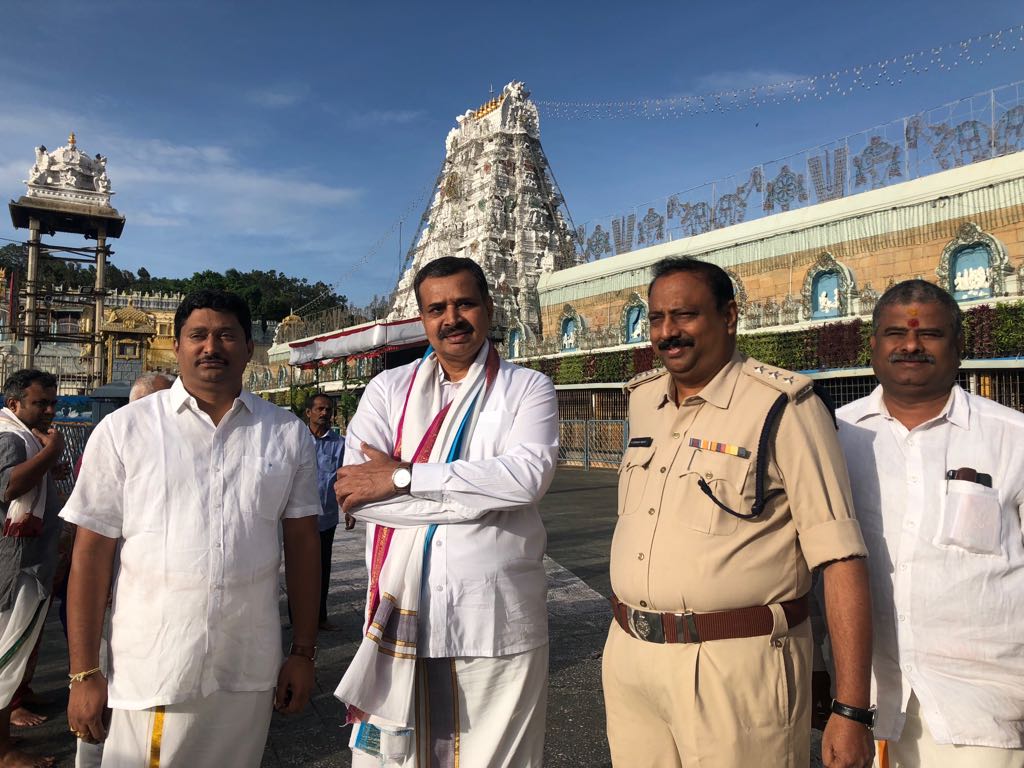 DIG Prabhakar Rao has visited Tirumala hill shrine and offered his prayers Lord Venkateswara today morning. Rao had darshan of the deity during VIP break. After darshan, temple officials offered Laddu prasadam and holy water to him at Ranganayakula mandapam.