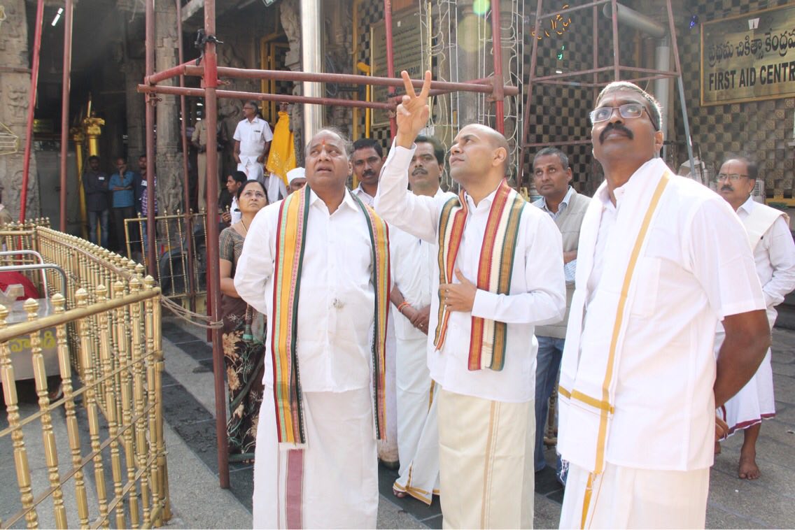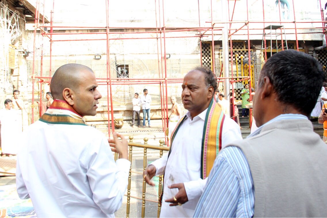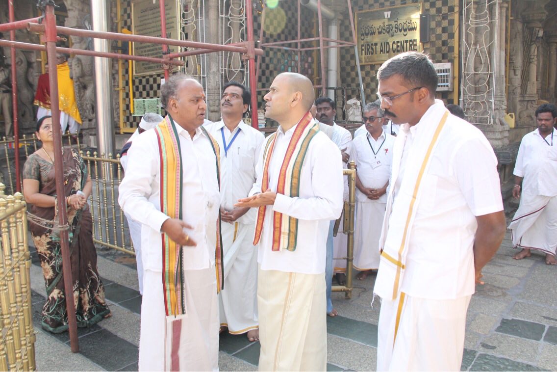 TTD EO Sri Anil Kumar Singhal along with Tirumala JEO Sri KS Sreenivasa Raju inspected the arrangement of retractable roof set up inside srivari temple in Tirumala.