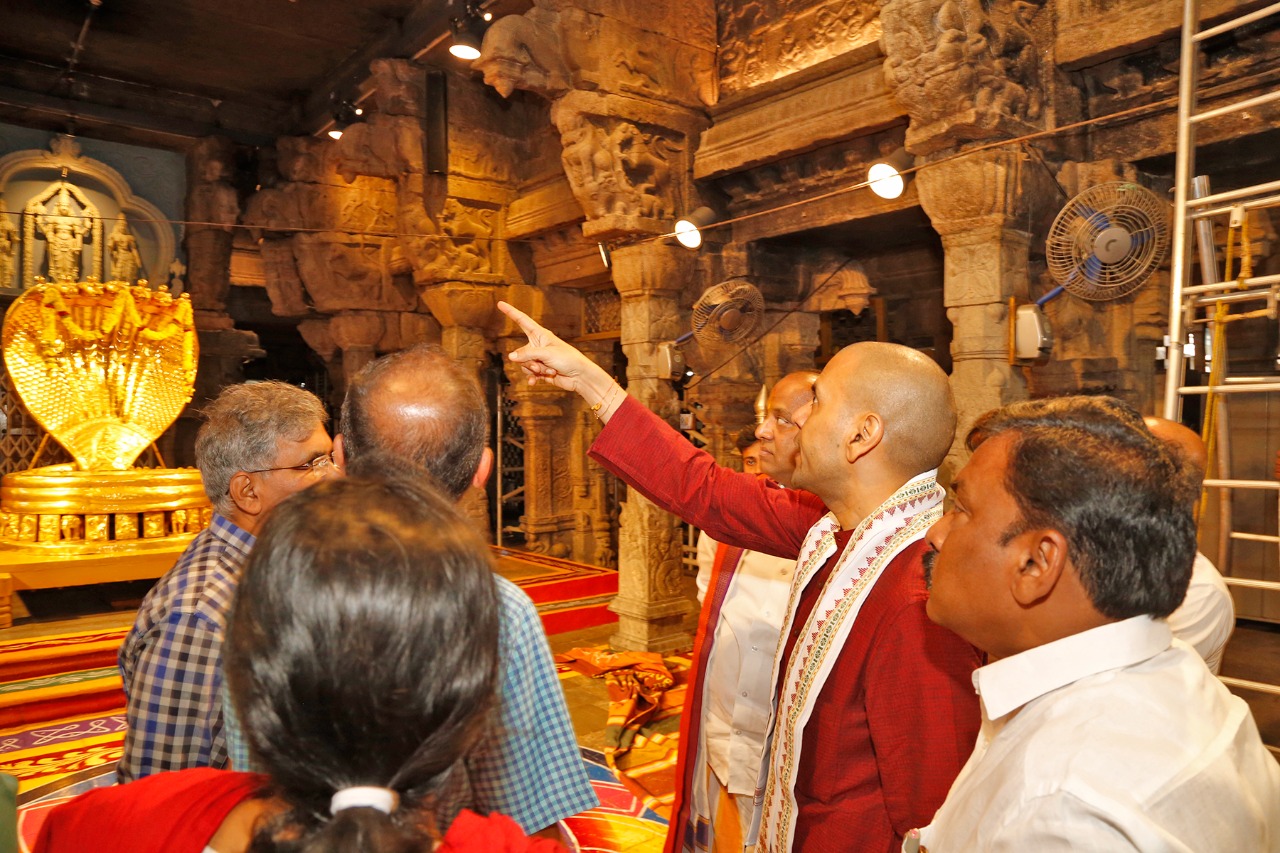 The TTD Executive officer Sri Anil Kumar Singhal on Friday inspected RANGANAYAKULA MANDAPAM INSIDE SRIVARI TEMPLE for the upcoming mega religious event of annual brahmotsavams along with Tirumala JEO Sri KS Sreenivasa Raju.