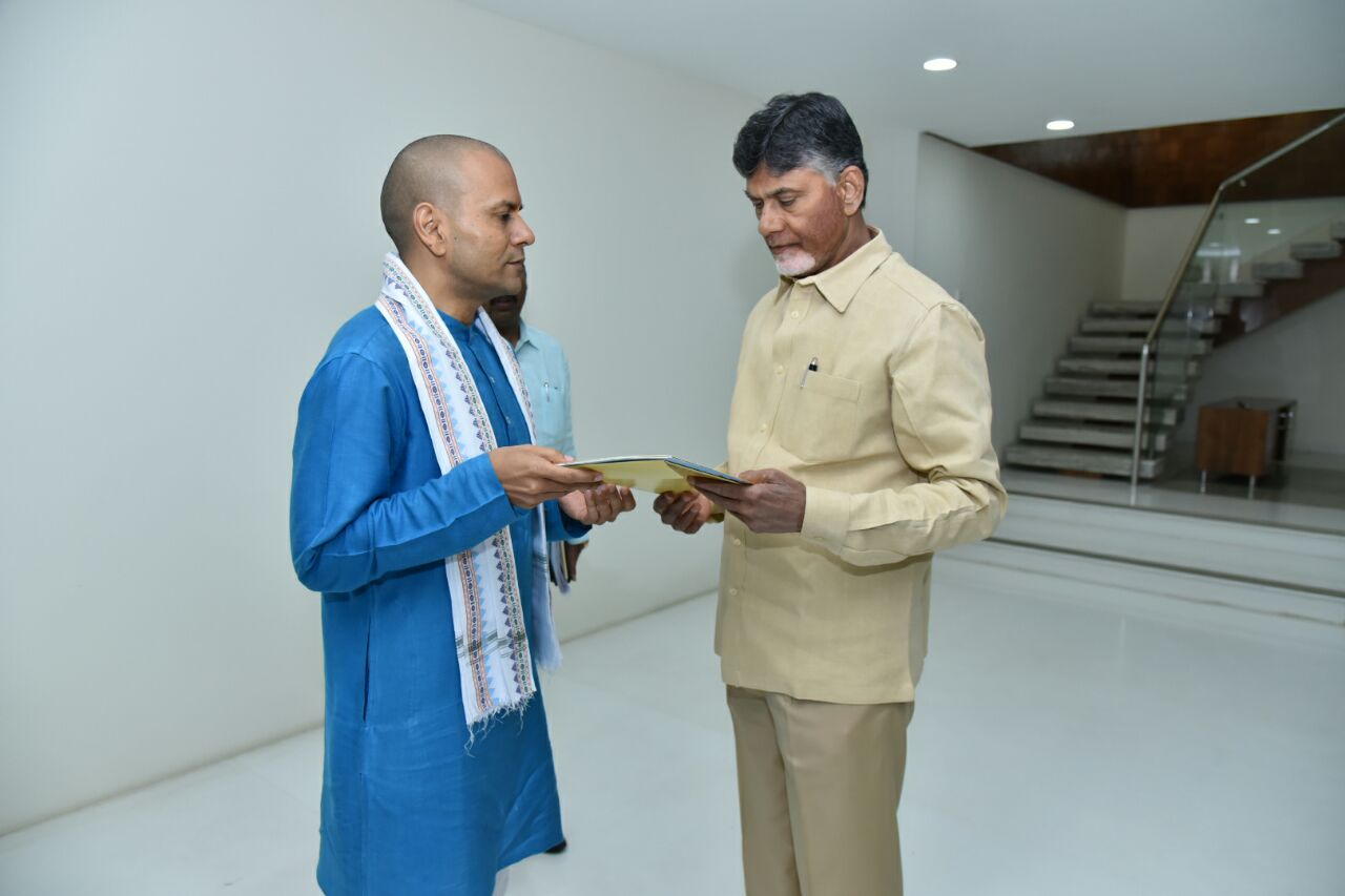 TTD EO Sri Anil Kumar Singhal today invited Honarable CM of Andhra Pradesh Sri Nara Chandrababu Naidu for SRIVARI ANNUAL BRAHMOTSAVAM 2018 scheduled from September 13 rd to 21st. AK Singhal met CBN at his official residence in Undavalli and extended the invitation to him. The EO asked the latter to attend the mega event with his family.