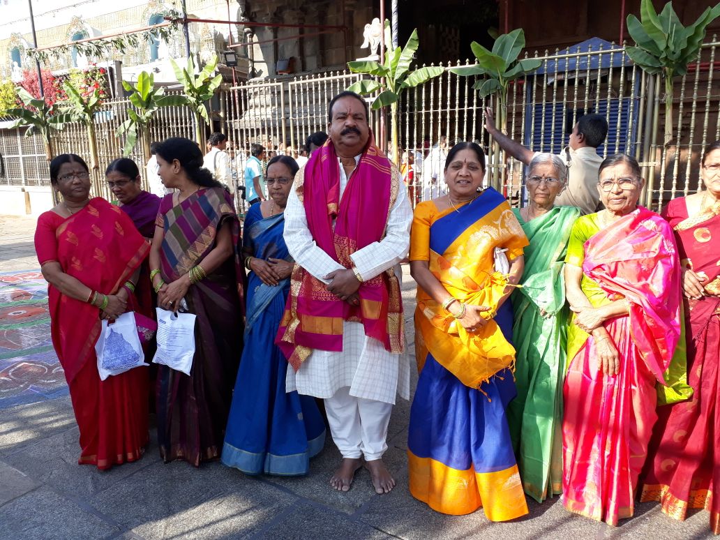 Telangana Congress Incharge Ramachandra Khuntia, Telangana Congress former MP Ponnam Prabhakar, TS MLA Kalvakuntla Vidyasagar Rao have visited Tirumala hill shrine to offer their prayers to Lord Venkateswara. The politicians had darshan of the deity during VIP break. After darshan, temple officials offered Laddu Prasadam and holy water to them at Ranganayakula Mandapam.