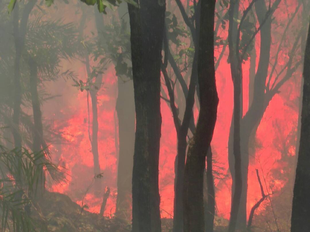 A massive forest fire broke out today near Veda Paatasala which is located in the interior forest belt of Seshachalam ranges in Tirumala. The flames raged for a while, and the area was enveloped in smoke. Following the fire, TTD officials alerted TTD forest people to douse the blaze. Firefighters are finding it difficult to tackle the blaze because of thick smoke.