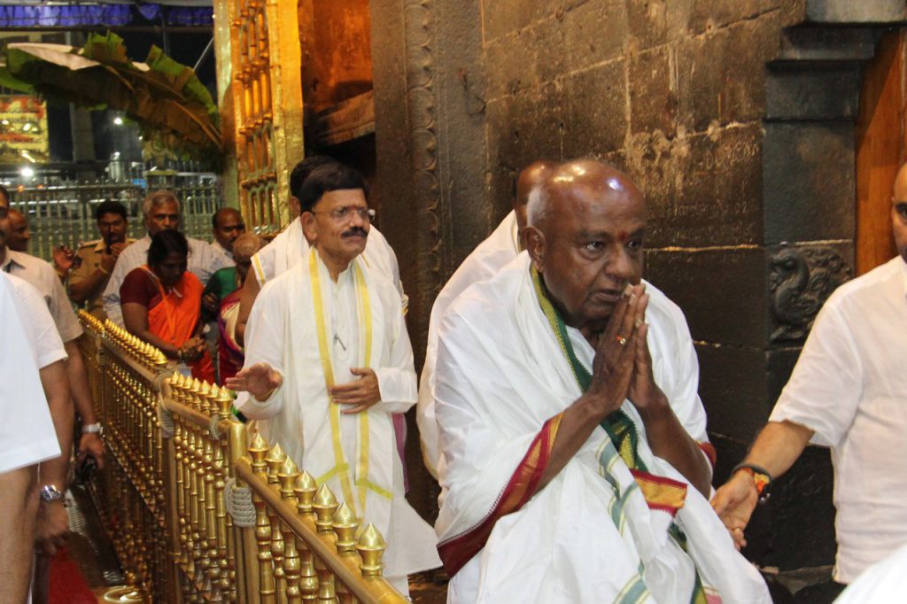 After offering prayers this morning, Gowda told reporters that he has been visiting the ancient shrine for the last 35 years on his birthday on May 18. To a query, Gowda asserted that they will remain with Congress and he is not in Prime Minister’s race.