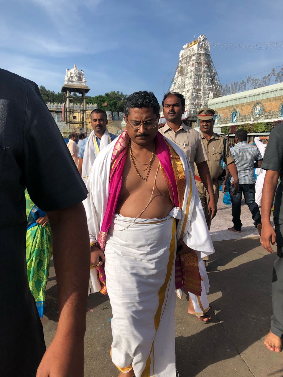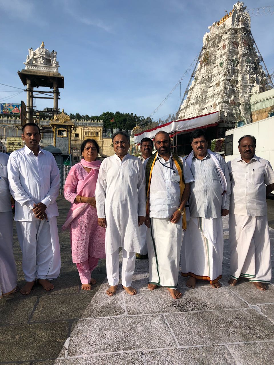 EX Supreme Court judge and Consumer forum chairman D K JAIN, Government Whip PVGR Naidu (Gana Babu) and Former legal advisor to then Governor H R Bhardwaj, Vikas Bansode had visited Tirumala hill shrine and offered their prayers to Lord Venkateswara. After darshan, temple officials offered Laddu prasadam and holy water to the VIPs at Ranganayakula mandapam.