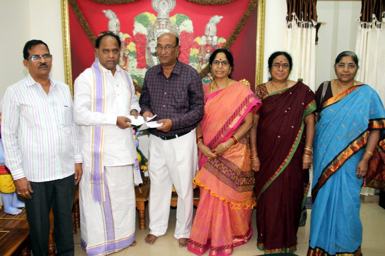 HE HANDED OVER THE CHEQUE TO TTD JEO KS SREENIVASA RAJU AT HIS CAMP OFFICE.