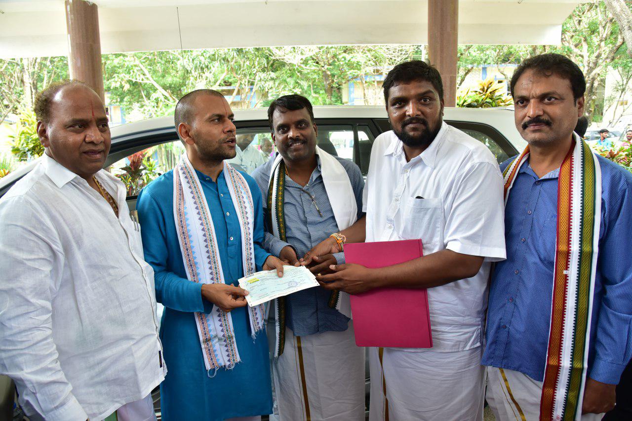 A Hyderabad based donor, Sri Linga donated Rs.20 lakhs to TTD Anna prasadam Trust on Friday. He has handed over the DD for the same to TTD EO Sri Anil Kumar Singhal at Annamaiah Bhavan in Tirumala. JEO Sri KS Sreenivas Raju was also present.