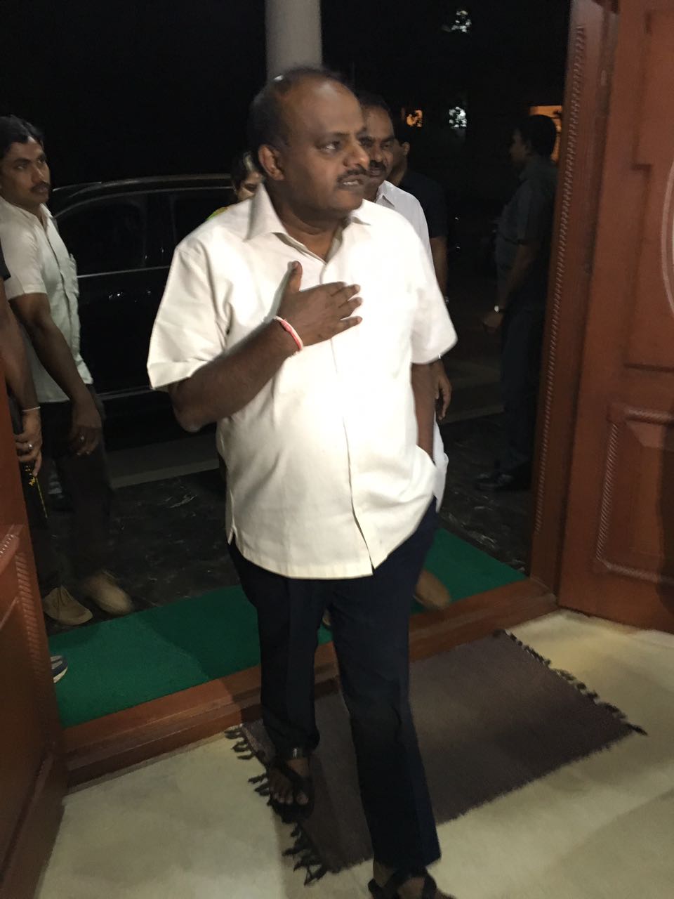 The Janata Dal (Secular) president H. D. Kumaraswamy reached Tirumala today to attend Srivari Abhisheka seva tomorrow morning. Talking to mediapersons Kumaraswamy said that Karnataka suffering from severe drought since 3 years. He come to pray Lord Venkateswara for plentiful rains this year in Karnataka. Kumaraswamy view on current political situation is, “in coming elections karnataka people will not entertain both congress and BJP”. Kumarswamy very much confident about winning the coming elections.