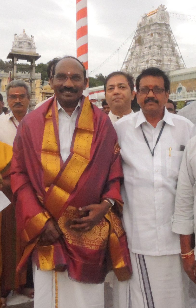 ISRO Chairman Sivan today visited Tirumala hill shrine and offered his prayers to Lord Venkateswara. He had darshan of the deity during VIP break. After darshan, temple priests supplied holy teerdh and Prasad to him at Ranganayakula mandapam.