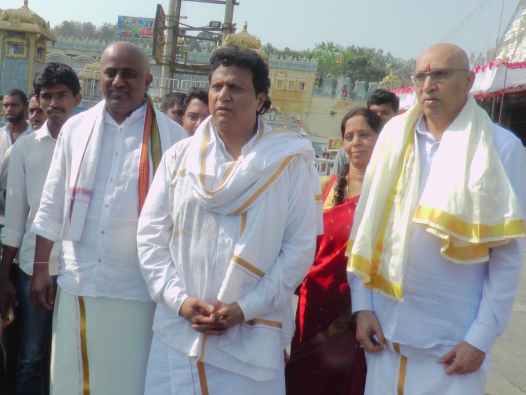 ISRO Chairman Kailasavadivoo Sivan, Director Trivikram Srinivas and Music Director Mani Sharma on Wednesday visited Tirumala hill shrine and offered their prayers to Lord Venkateswara. The VIPs had darshan of the deity during VIP break. After darshan temple officials offered Laddu prasadam and holy water to them at Ranganayakula mandapam.