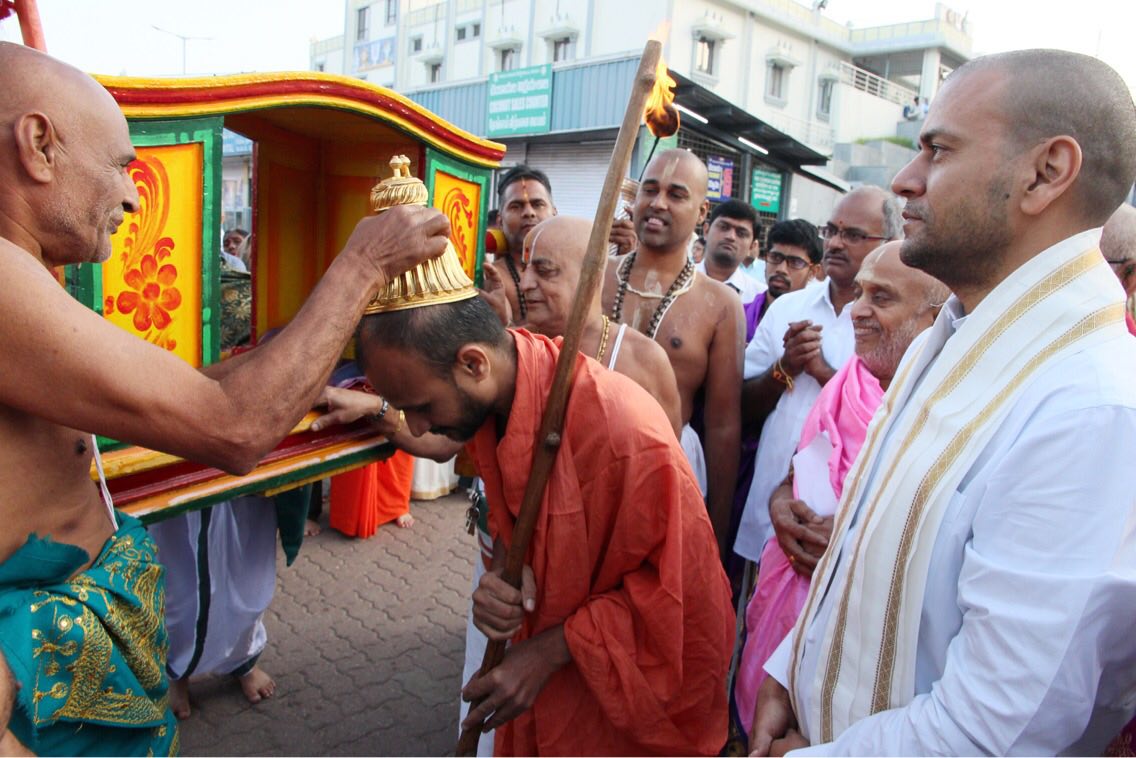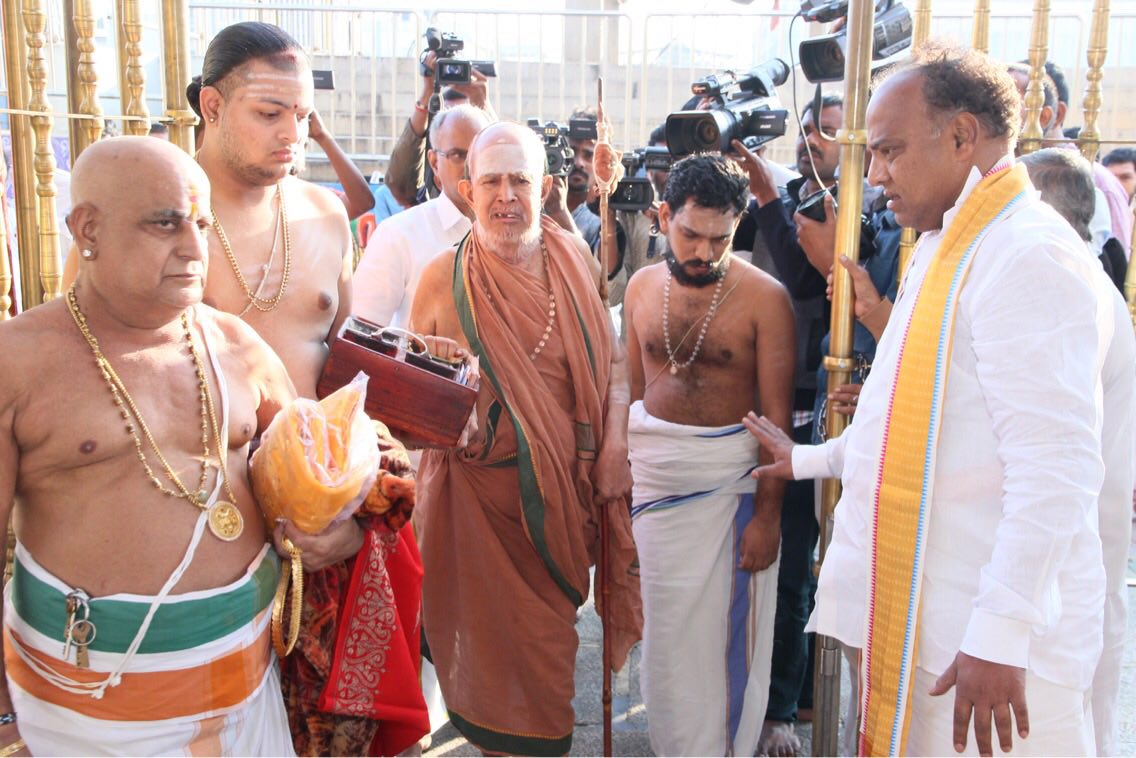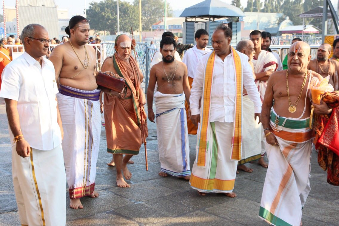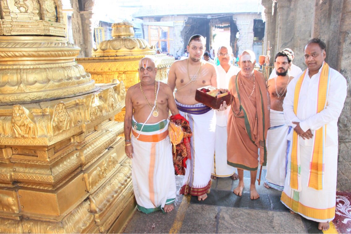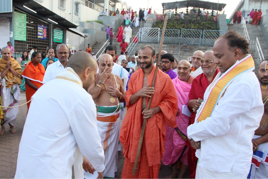 Kanchi Kamakoti Seer Sri Sri Sri Jayendra Saraswathi, Uttaradhi Mutt Seer Sri Satyatmatheertha Swamyji, visited Tirumala temple to offer prayers on Tuesday. The seers was accorded warm welcome at the temple entrance by TTD executive officer D Sambasiva Rao and accompanied them for darshan of Lord Venkateswara. Later the seers were was honoured with sacred silk cloth and prasadams by the Tirumala Tirupati Devasthanams (TTD) EO AK Singhal.