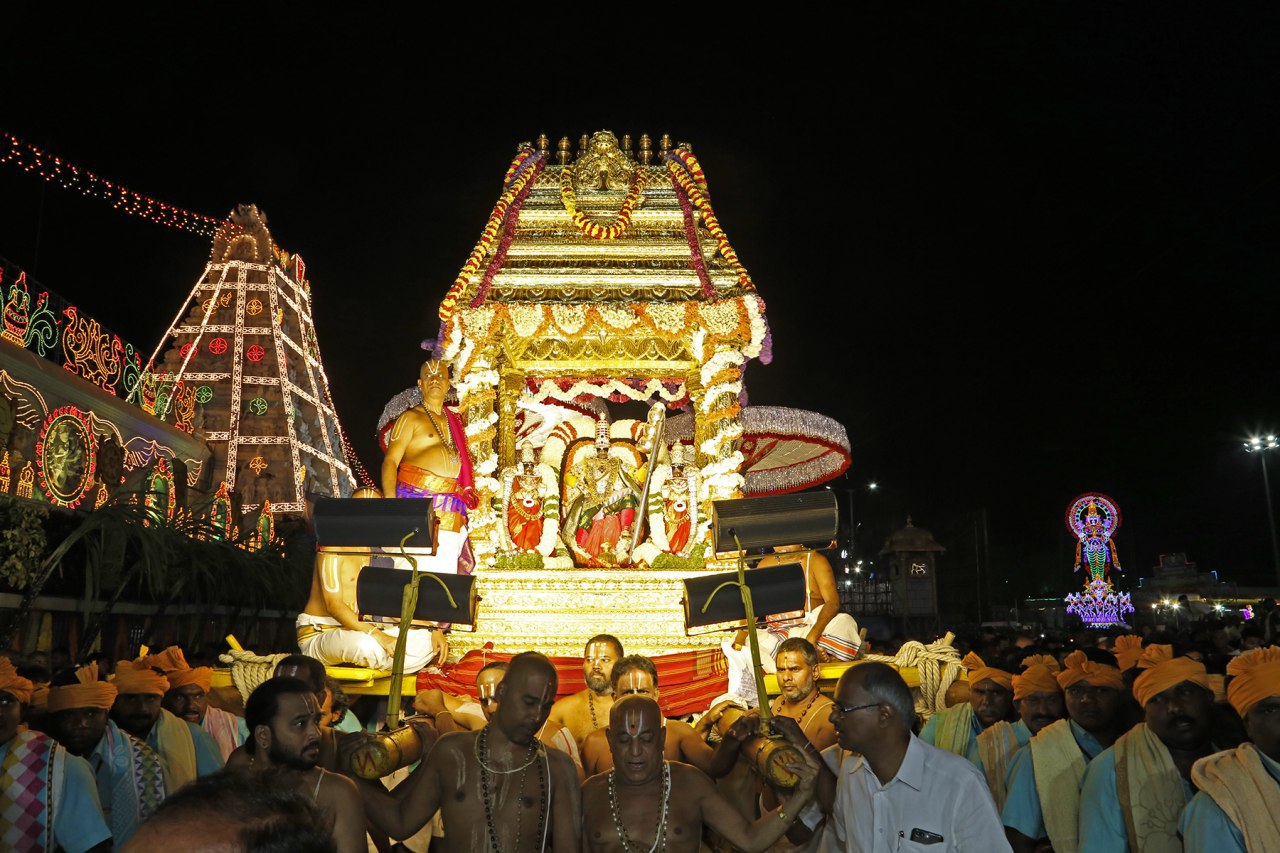 TTD EO Sri Anil Kumar Singhal, TTD Board members, officials and large number witnessed celestial procession.