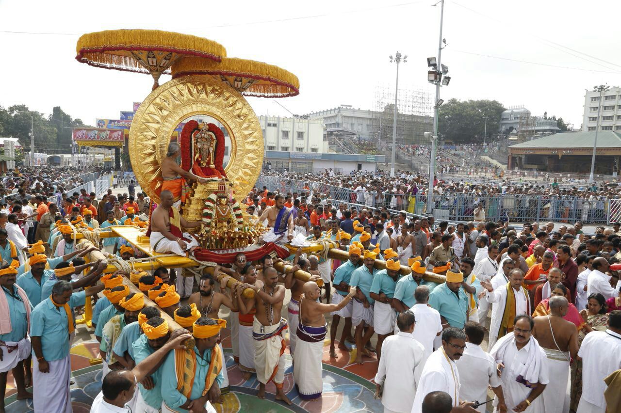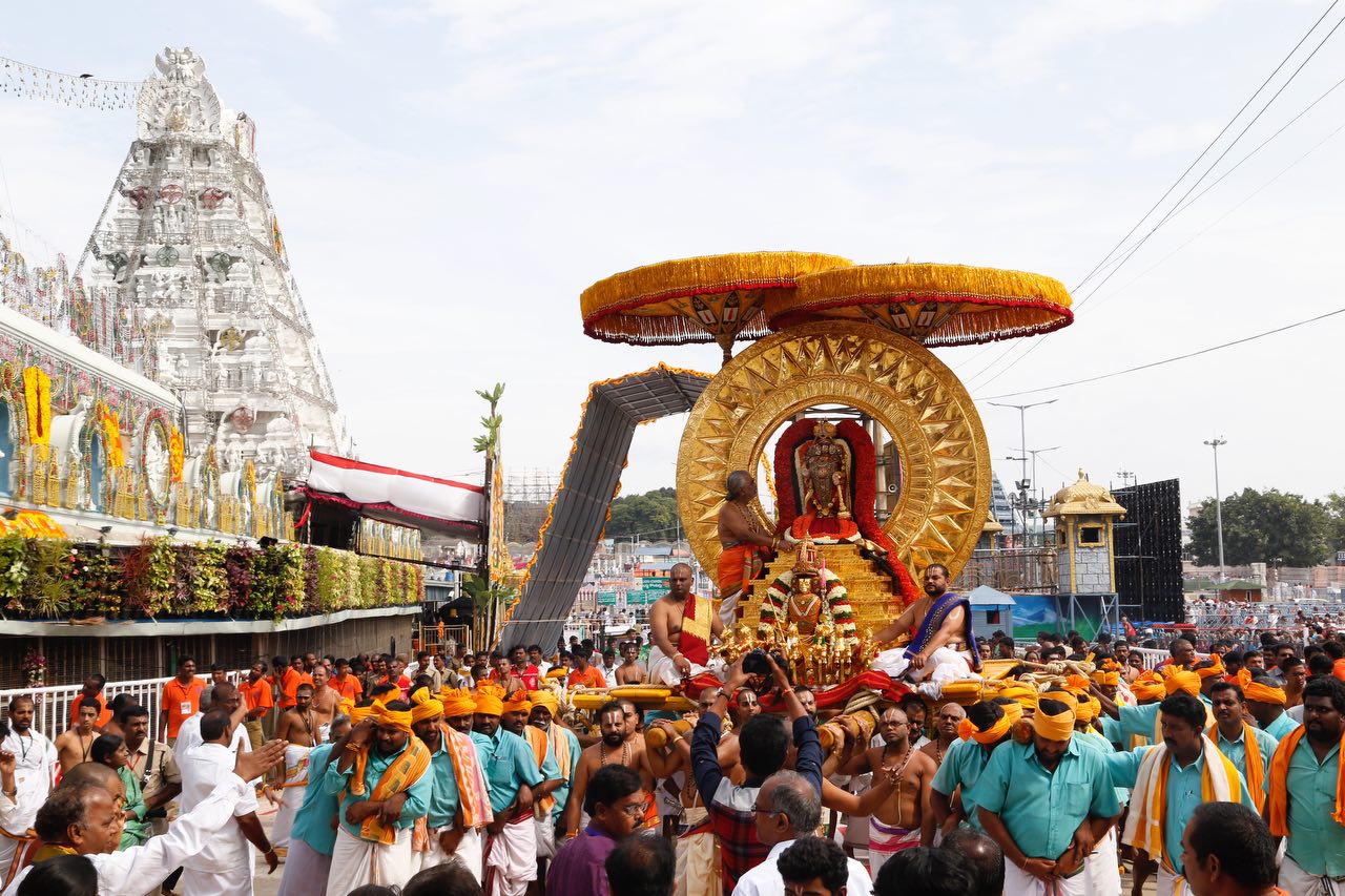 On the seventh day morning, the Lord Malayappa Swamy took celestial ride on the beautifully decorated Suryaprabha Vahanam on Friday.