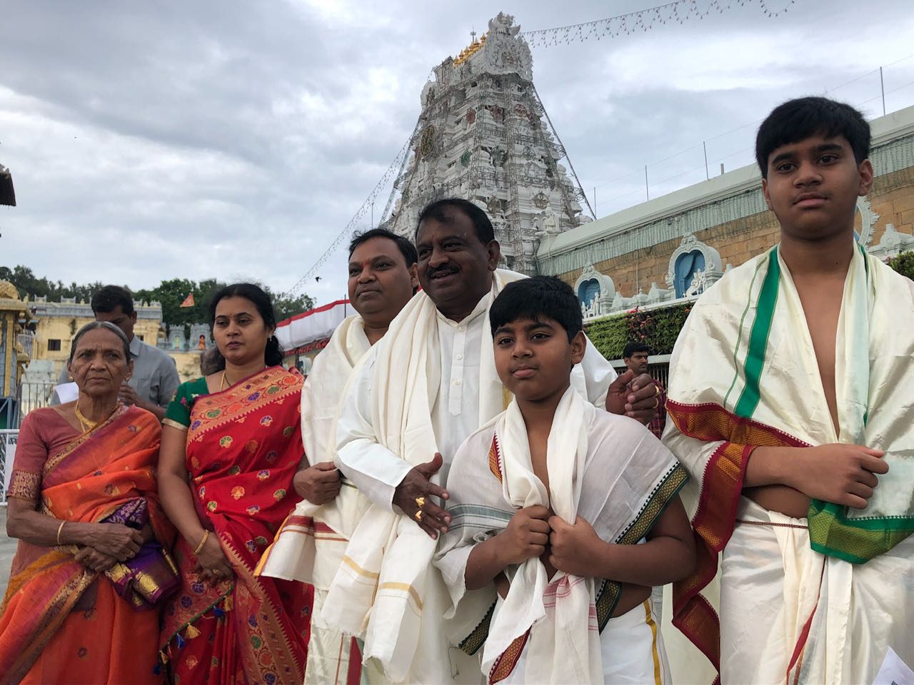 Minister Pithani Satyanarayana prays at Tirumala with family