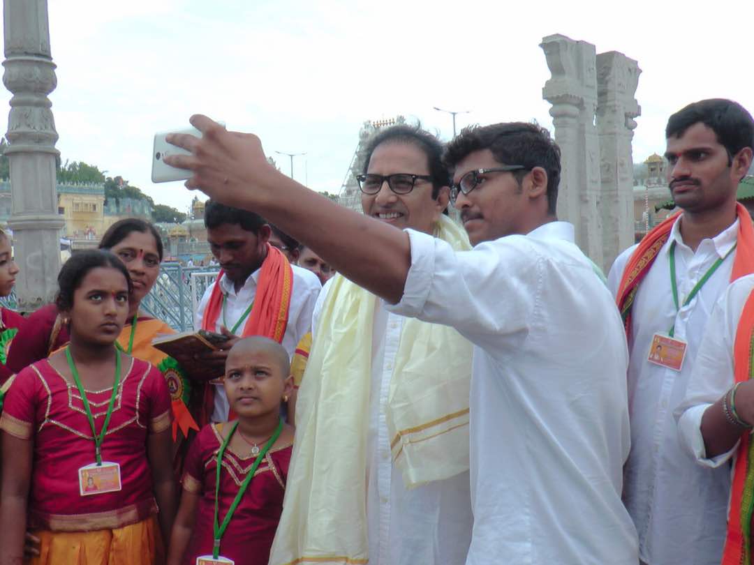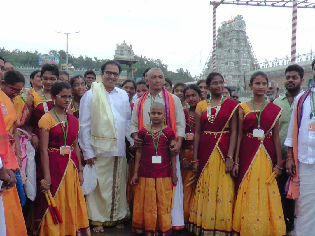 Music Director/Singer Vandemataram Srinivas today visited the sacred shrine of Lord Balaji along with his spouse to offer his prayers. Srinivas had the darshan of the deity during VIP break darshan early morning. After darshan, TTD officials offered the couple the sacred Tirumala Prasadam.