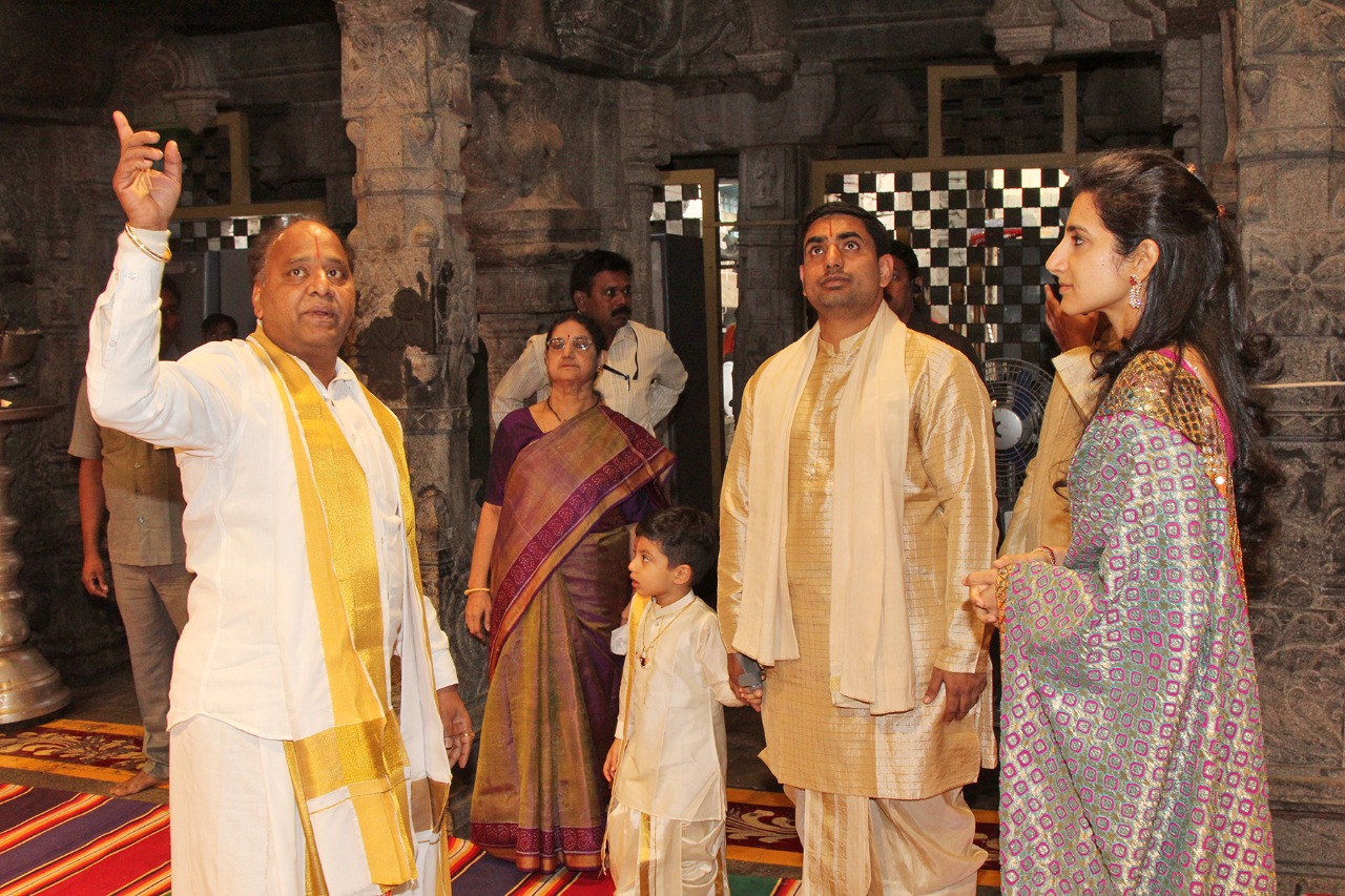 Sri Nara Lokesh, Minister of AP for Panchayat Raj, Rural Development and IT Offered prayers to Lord Venkateswara today morning. Accompanied by his wife Nara Brahmani and son Nara Devansh, Lokesh had darshan of the deity during break darshan in the early hours of Monday. After darshan JEO presented Lord laminated photo and Laddu prasadam to them at ranganayakula mandapam.
