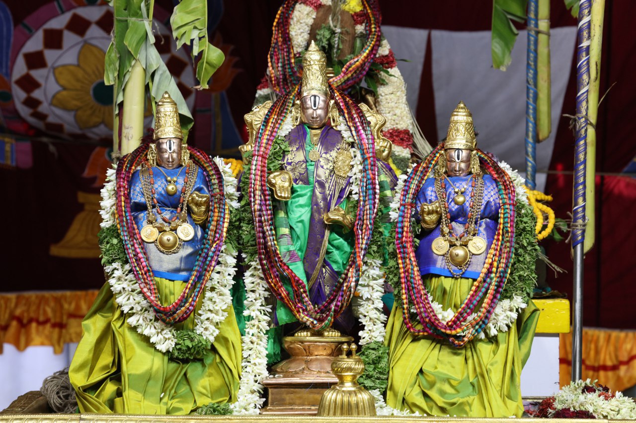 On the second day of the ongoing three day annual Pavitrotsavams which is also known as Sarva Kamaprada Utsavam, the processional deities of Sri Malayappa Swami, Sri Devi and Bhu Devi were decked with sacred Pavitra Malas on Friday. These silk threads spun in different natural colours are made into a garland and it will be adorned to deities after Snapana Tirumanjanam.