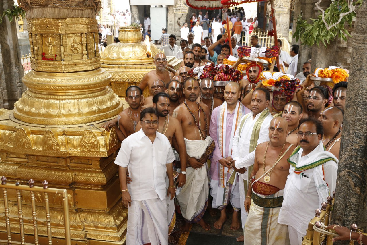 TTD EO Sri Anil Kumar Singhal, Tirumala JEO Sri KS Sreenivasa Raju, Temple DyEO Sri Rama Rao, Peishkar Sri Ramesh, Bokkasam incharge Sri Gururaja RAO, OSD Sri Seshadri and others took part.
