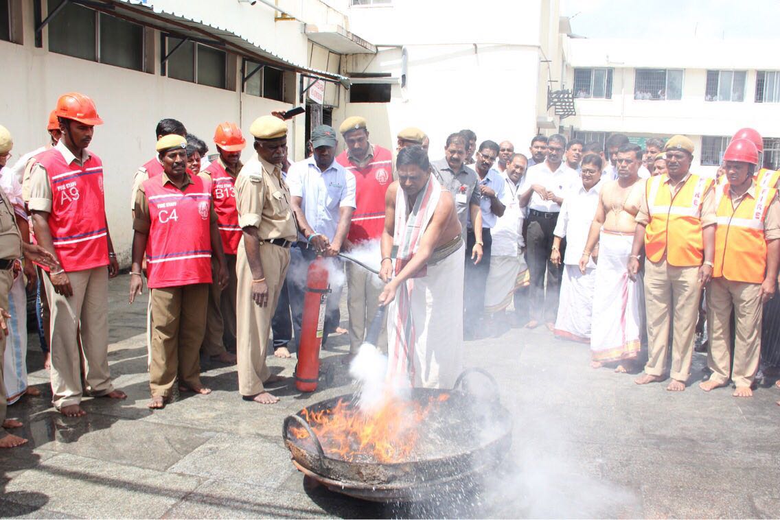 TTD fire officials on Saturday held fire drill to potu workers. The officials have training a to the workers on how to prevent the spread of and extinguish significant unwanted fires in potu. TTD CVSO Ake Ravi Krishna and other officials present during the event.
