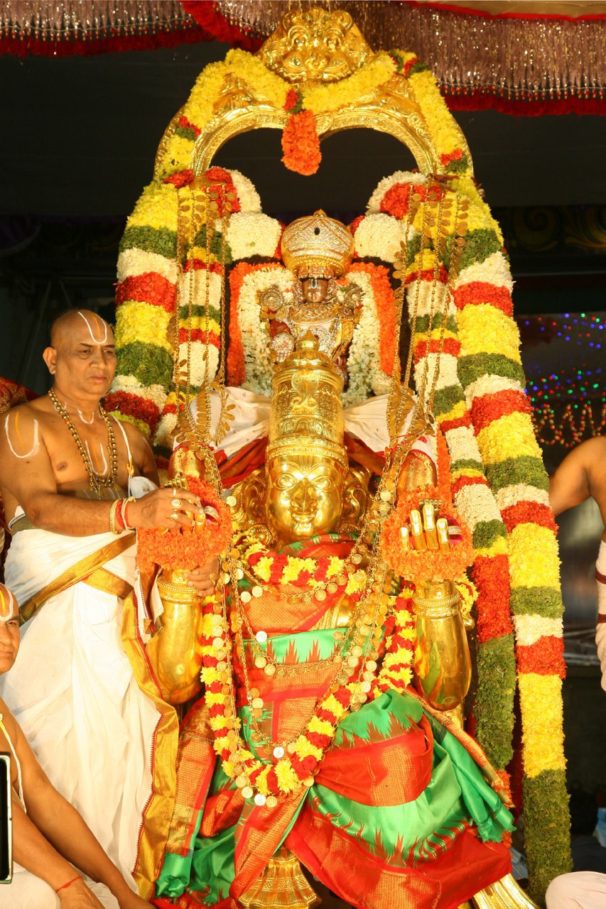 Lord Sri Malayappa Swamy took celestial ride on Garuda Vahanam in the cour mada streets between 7pm and 9pm.