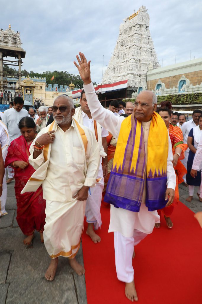 The Honourable President of India, H.E.Sri Ramnath Kovind along with his family and entourage, offered prayers at the Hill temple of Lord Venkateswara in Tirumala on Sunday.