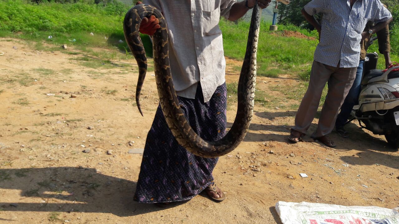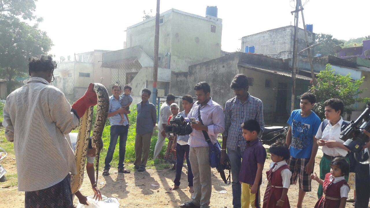 python 1A python created hulchul and scared the residents of Balaji Nagar in famous hill shrine Tirumala on Wednesday. The reptile spotted in Balaji Nagar East area and residents got frightened with the sight of the big snake. informed the TTD officials. Officials called in snake catchers and