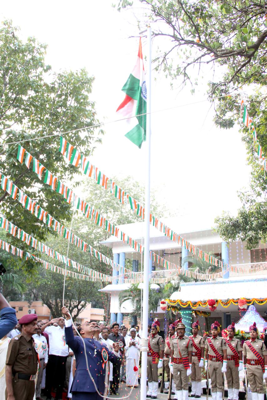 The 69th Republic Day was celebrated with patriotic fervour and gaiety in Tirumala. JEO Sri KS Sreenivasa Raju hoisted the National flag on Friday in Gokulam Rest House premises and spoke to the gathering about the sanctity of the occasion and the role played by the Constitutional makers, with particular reference to Dr. B.R. Ambedkar. DyEO Temple Sri Kodanda Rama Rao, SE 2 Sri Ramachandra Reddy, Health Officer Dr Sermista, VGOs Smt Sada Lakshmi, Sri Ravindra Reddy and others were also present.
