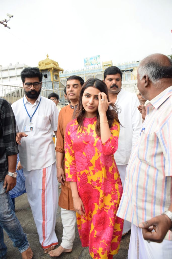 Actress Samantha and Sharwanand who paired up together for the first time in recently released movie Jaanu had darshan of Lord Venkateswara in Tirumala on Sunday. Accompanied by producer Dil Raju they offered prayers to the deity during break darshan. After darshan temple officials offered laddu prasadam and holy water to them at ranganayakula mandapam.