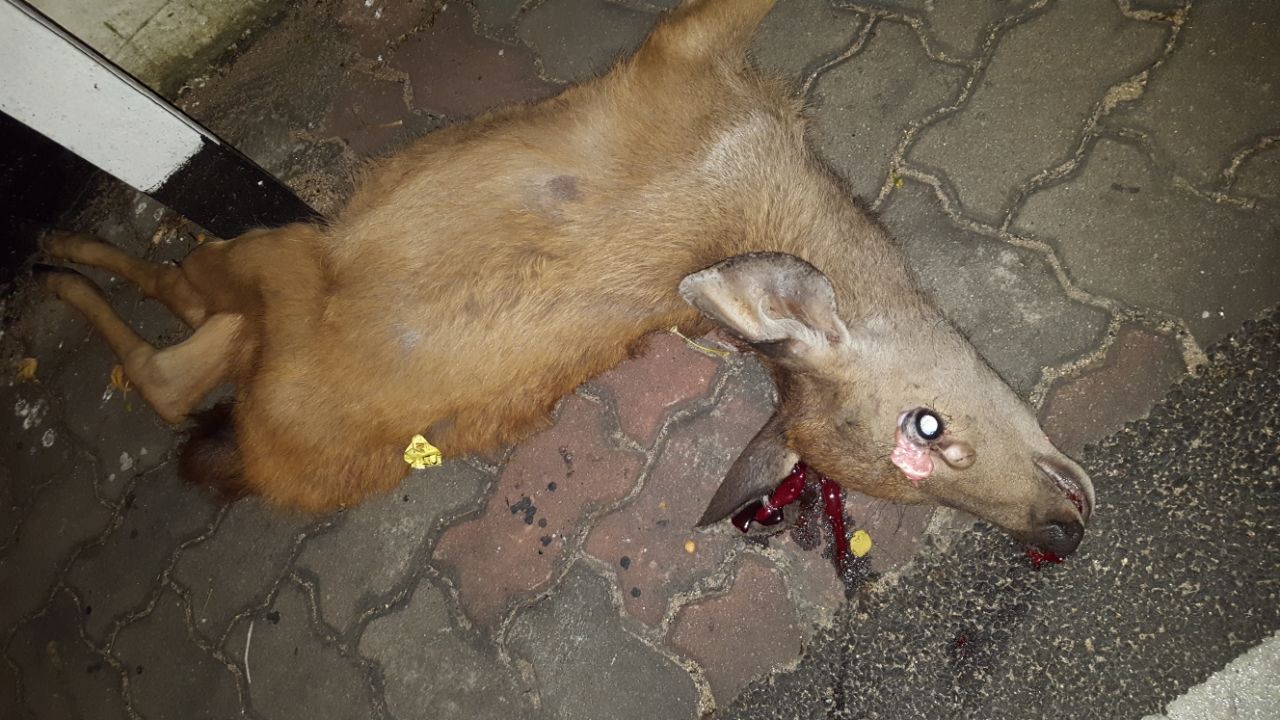 A small deer was found dead near vinayaka Swamy temple on the second Tirumala Ghat Road, where it might got hit by some unidentified vehicle while crossing the road.