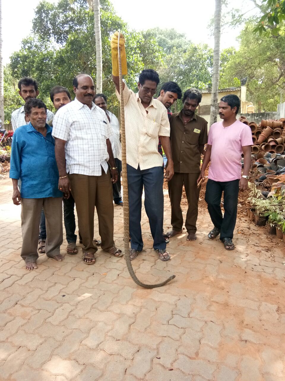 A big venemous snake creates panic among Balaji Nagar residents in Tirumala on Friday. The reptile made its way into a house in the residential area and the residents shocked after seeing the big snake. They informed the matter to snake catcher Bhaskar Naidu following which he reached the spot and caught the snake.