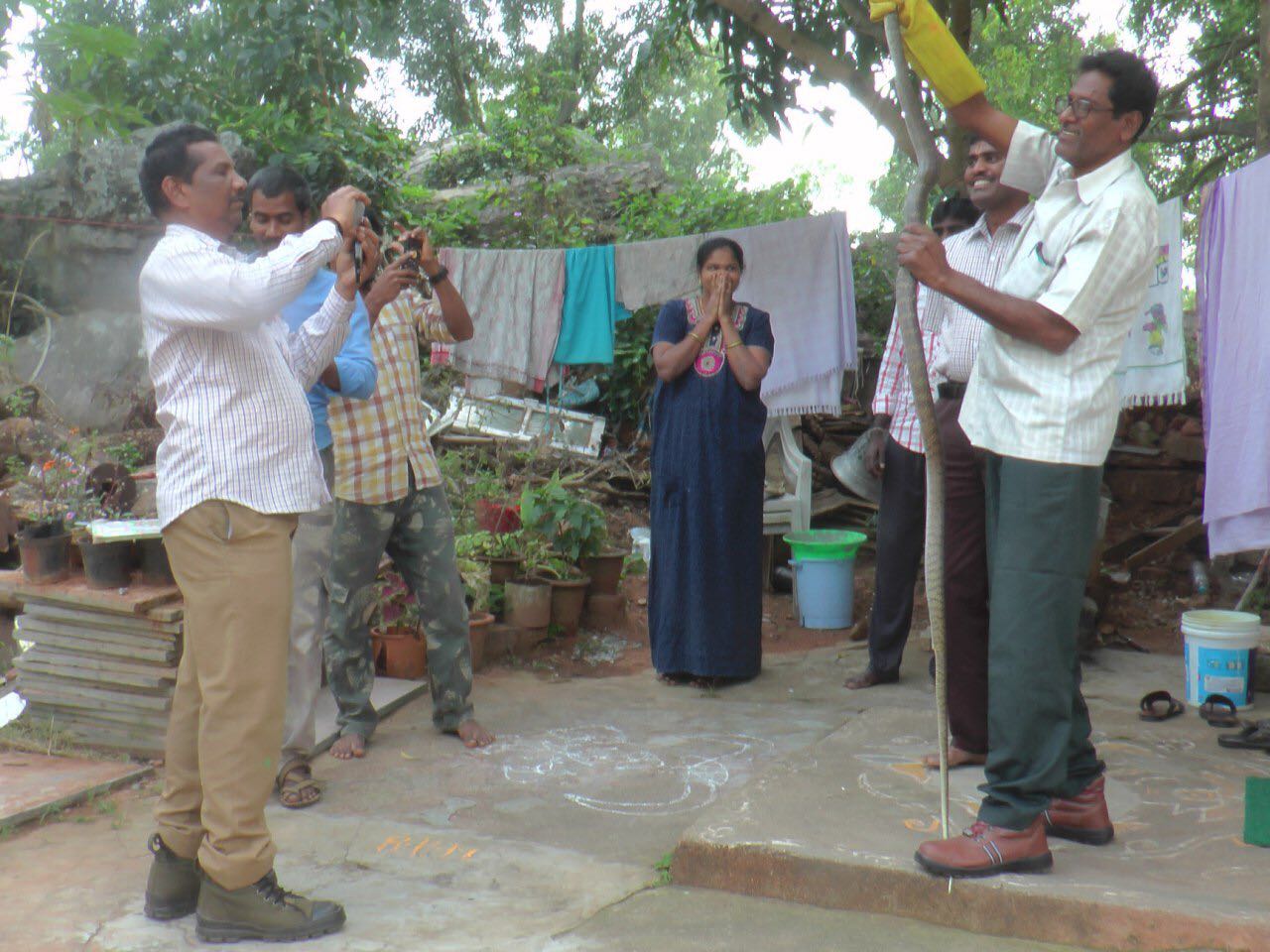 A big snake creates panic in Tirumala on Friday. The reptile made its way to the quarters near forest guest house and entered into a house. The presence of the snake created commotion and kept residents and devotees prompting to alert the snake catcher Bhaskar Naidu. After struggling for quite some time the catcher caught the huge snake.