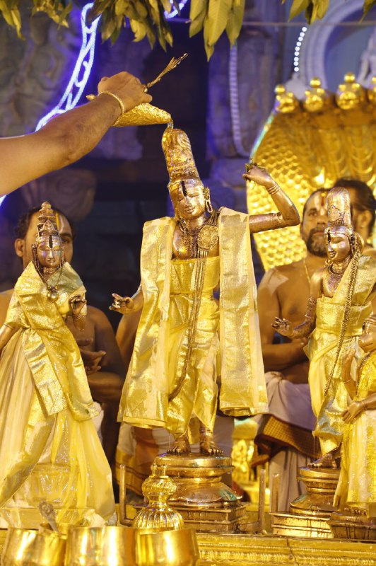 Snapana tirumanjanam was performed to Lord Rama, Seetha, Lakshmana & Hanuman inside Srivari temple today on the eve of Sri Rama Navami. Priests performed ‘abhishekam’ on the presiding deities with holy water, milk, curd, honey, coconut water, sandal, turmeric, tulasi leaves and panchatheertham, amidst Vedic chants.
